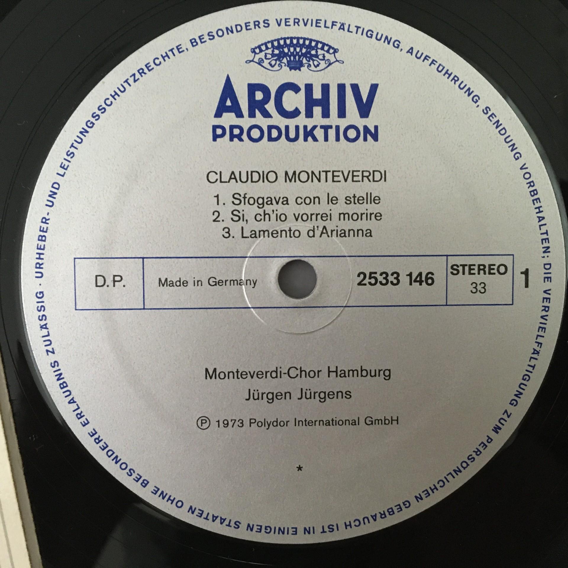 Q545 Monteverdi Madrigals Lamento d´Arianna Jürgens DGG Archiv 2533 146 Stereo