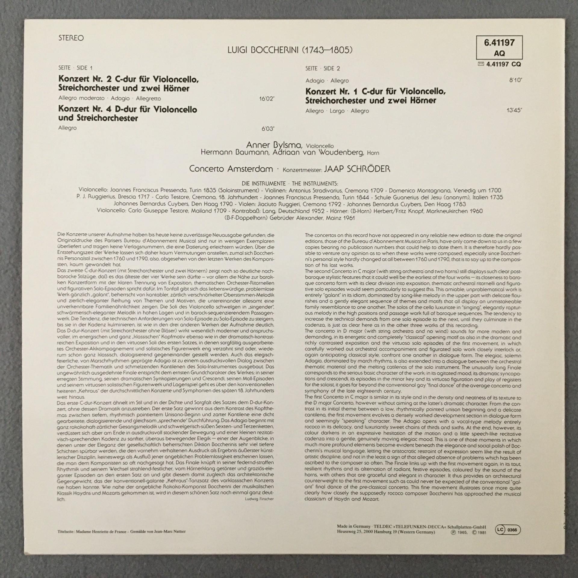 Q550 Boccherini Cello Concertos Bylsma Schröder Telefunken 6.41197 AQ Stereo