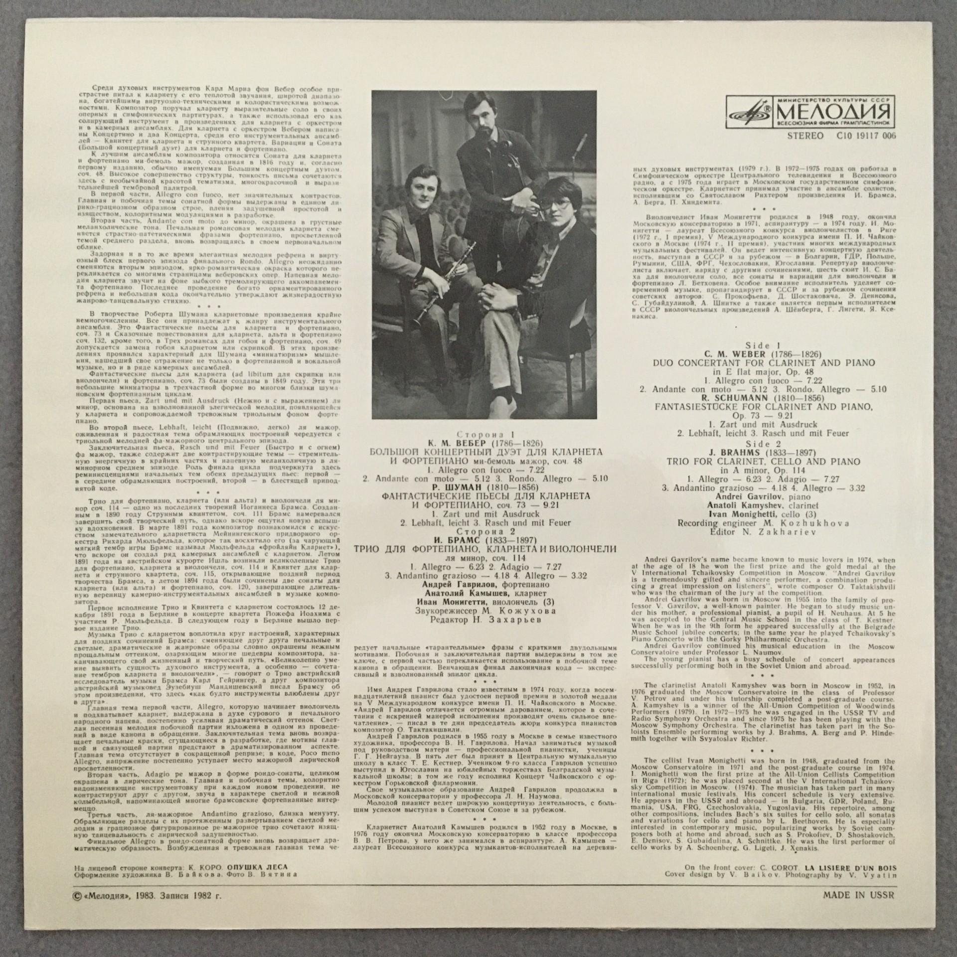 Q560 Weber Schumann Brahms Gavrilov Kamyshev Melodiya C10 19117 006 Stereo