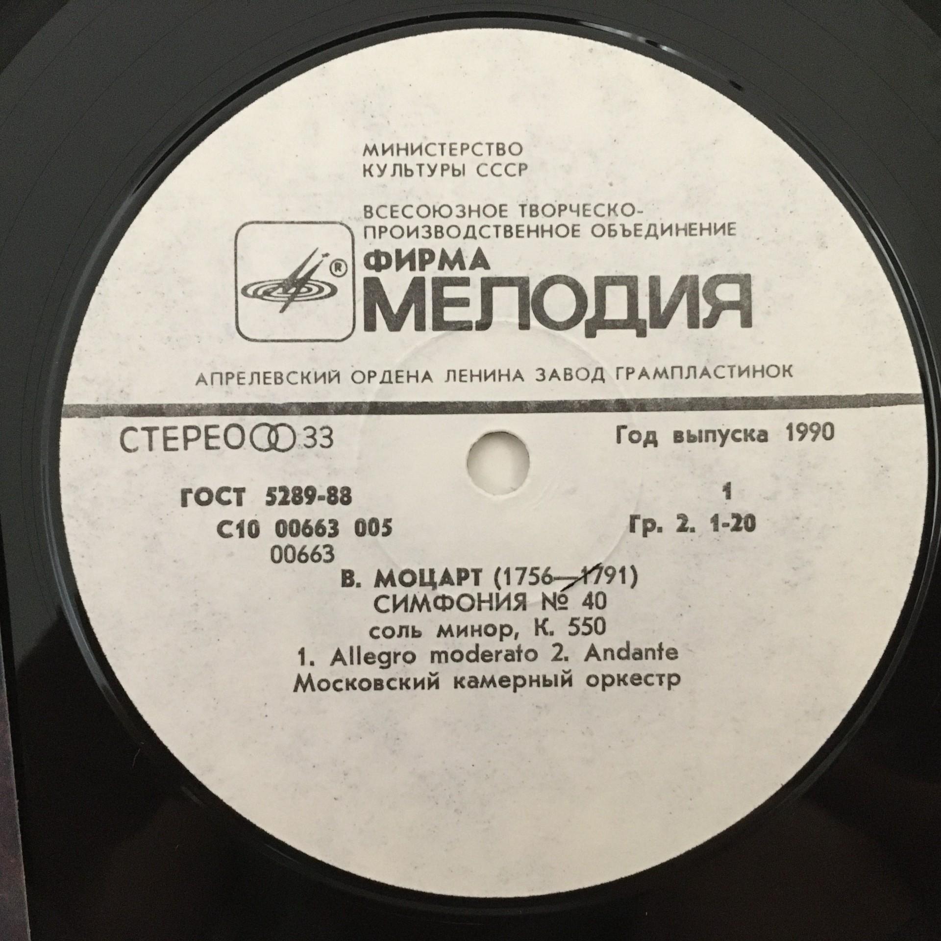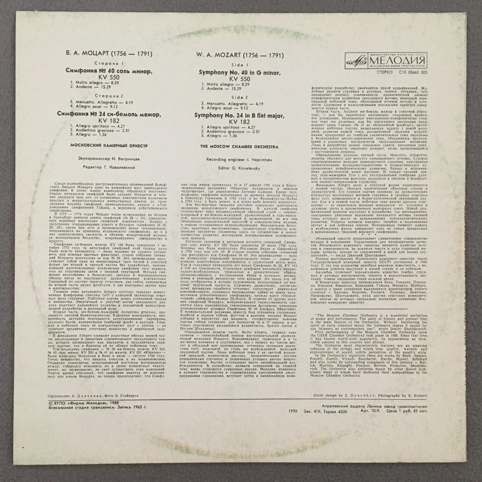 Q563 Mozart Symphonies No.40 & 24 Moscow Chamber O. Melodiya C10 00663 005 St