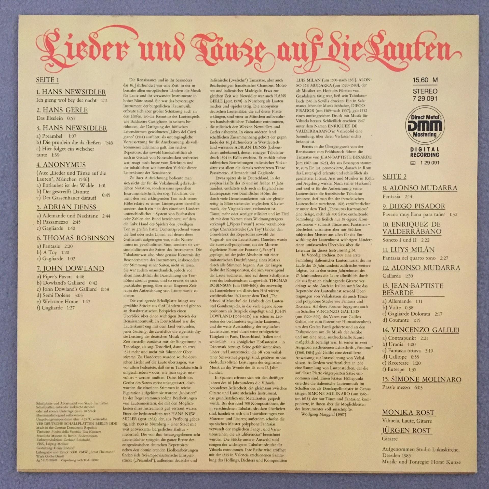 Q567 Songs & Dances for Lutes M. & J. Rost Eterna 7 29 091 Digital Stereo