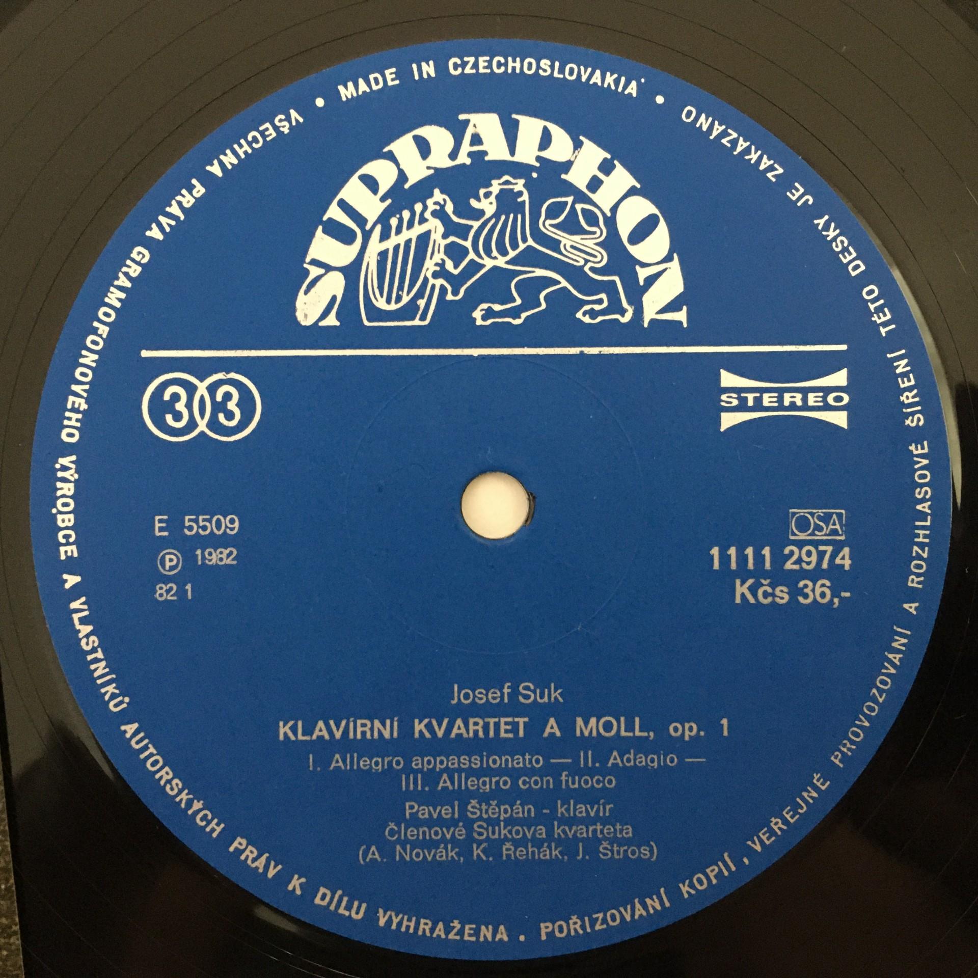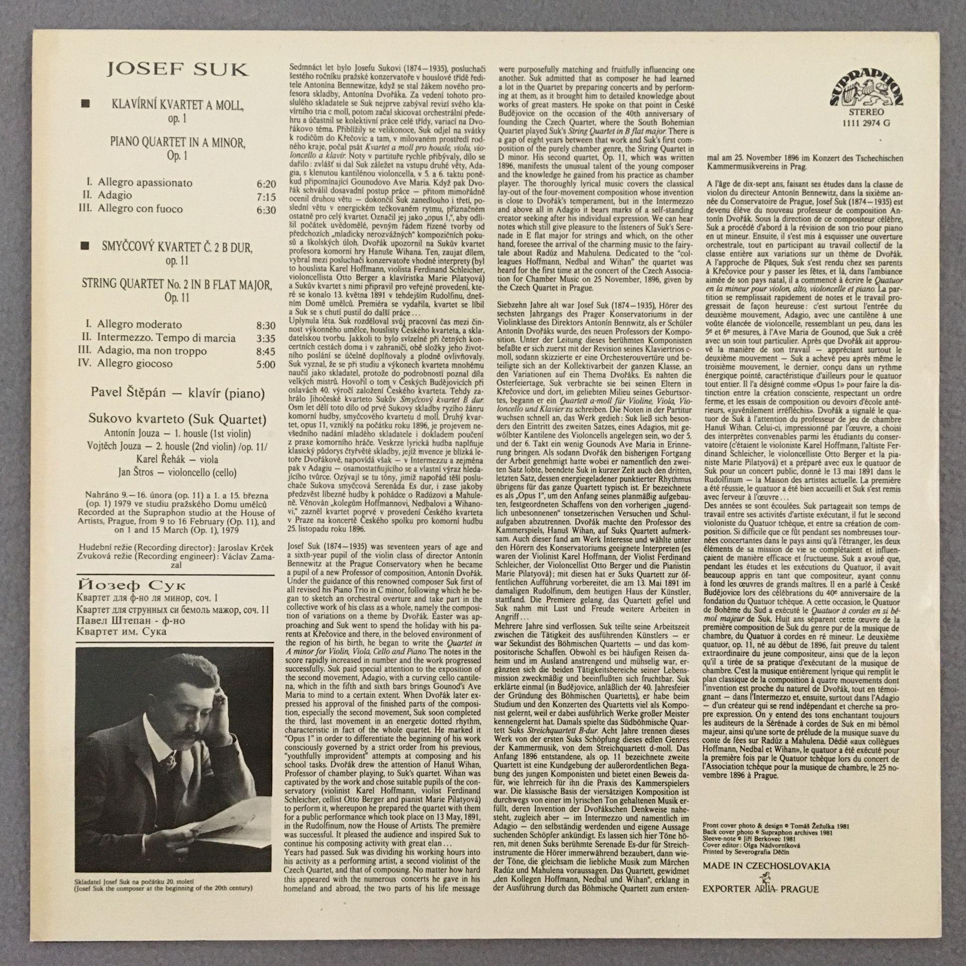 Q573 Suk String Quartet Piano Quartet Stepan Supraphon 1111 2974 Stereo