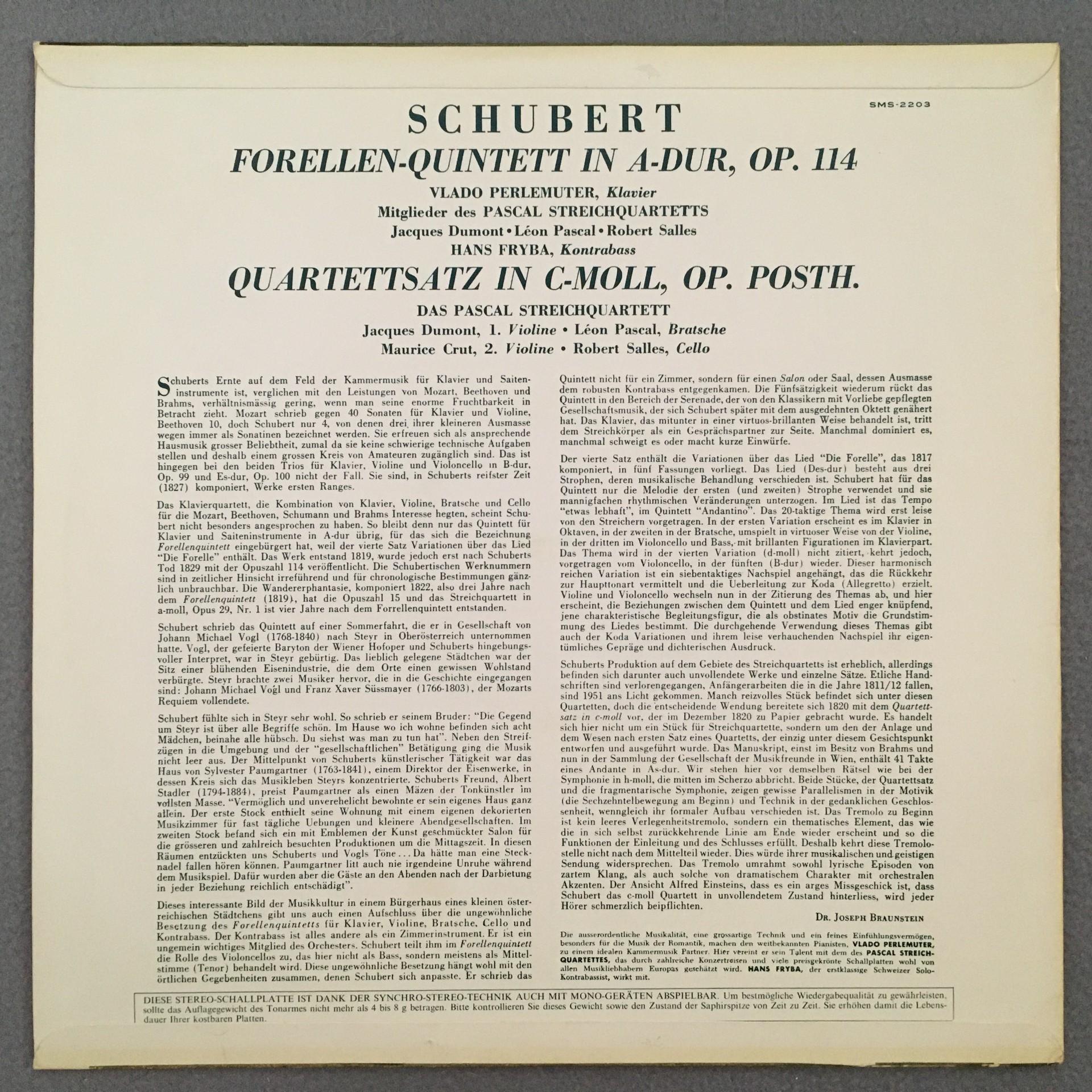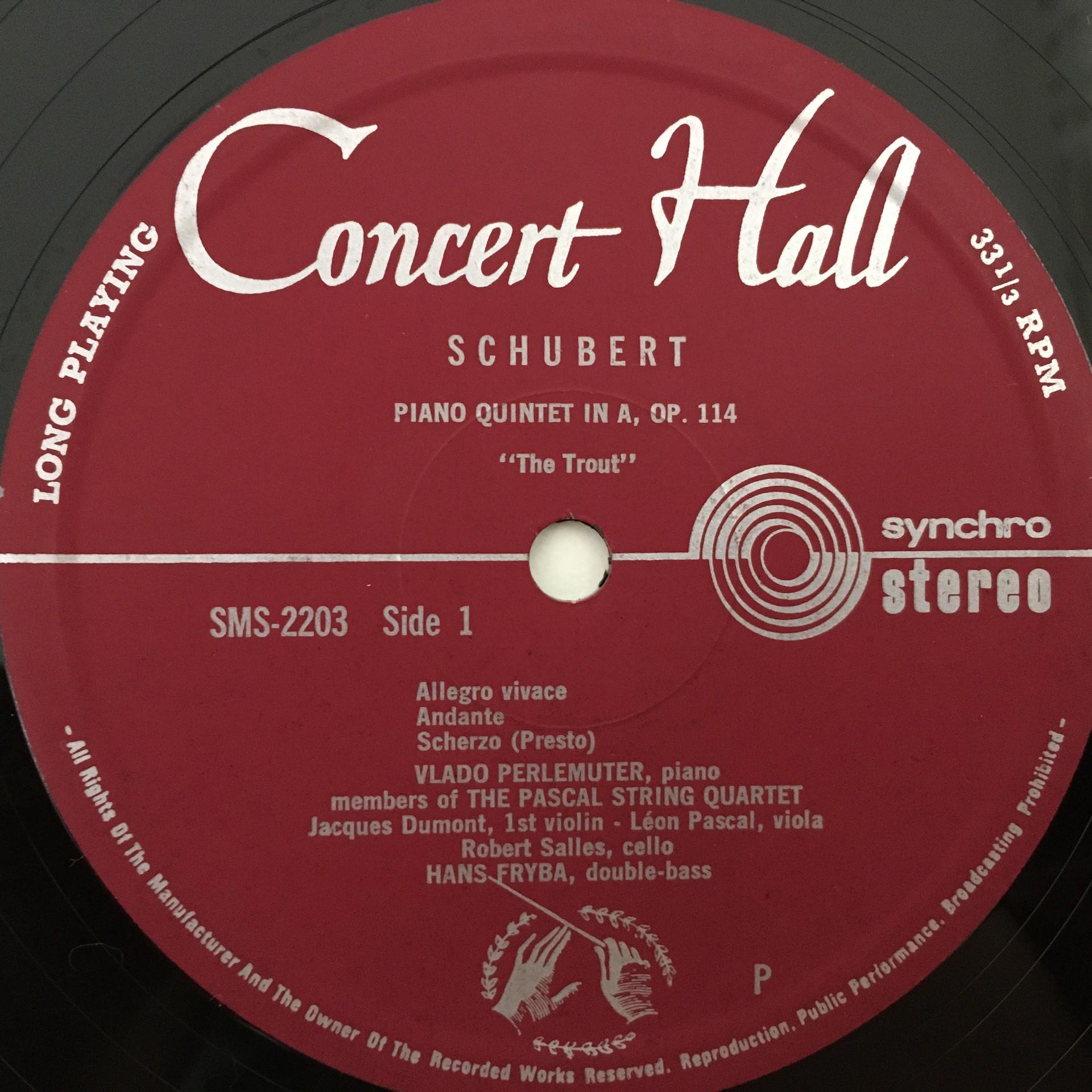 Q579 Schubert Trout Quintet Pascal String Quartet Concert Hall SMS-2203 Stereo