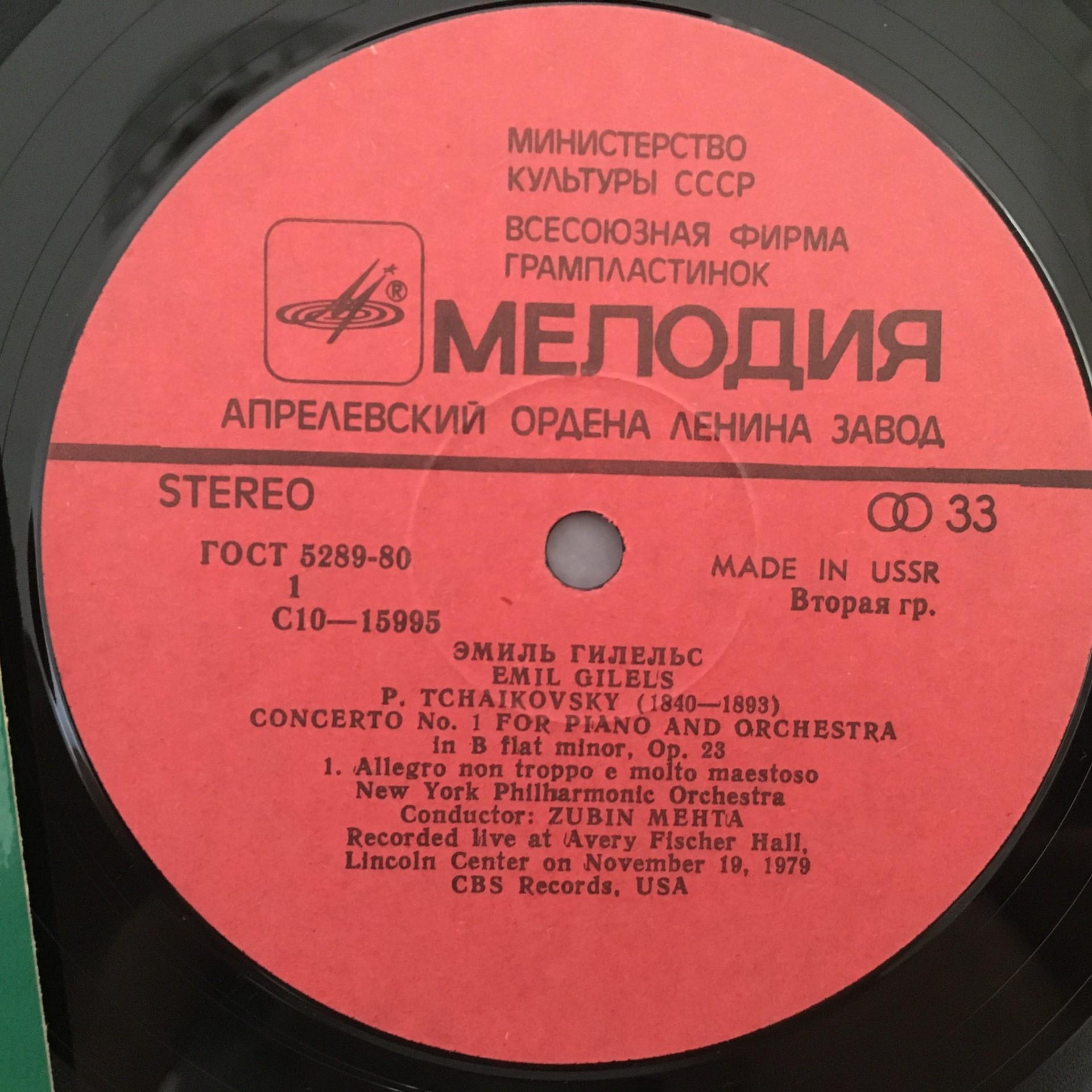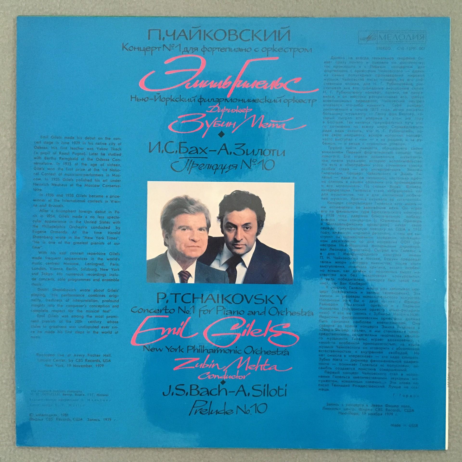 Q596 Tchaikovsky Piano Concerto No.1 Gilels Mehta Melodiya C10-15995 001 Stereo