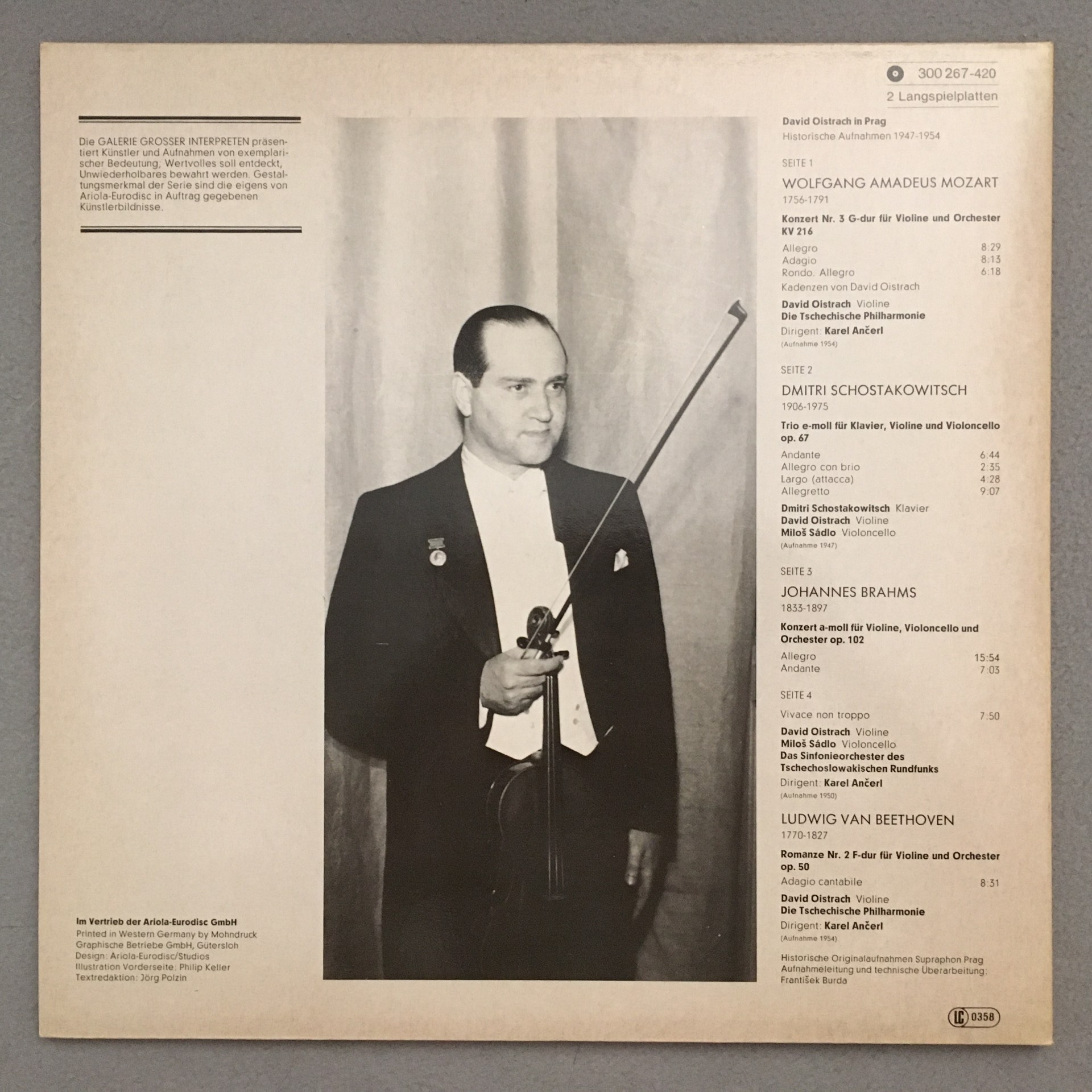 R223 Mozart Brahms Concertos Oistrakh Ancerl 2LP Supraphon 300 267-420 Stereo