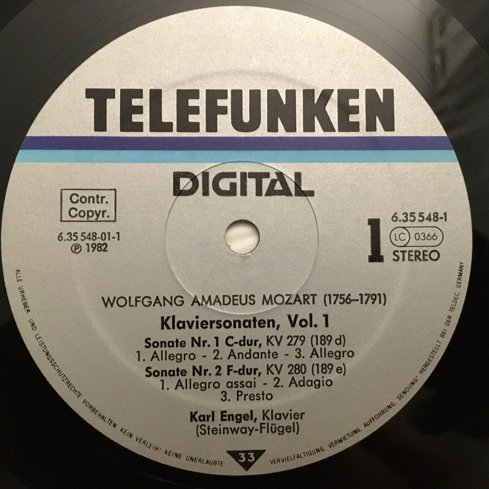 E032 Mozart Piano Sonatas Vol.1 Engel 4LP Telefunken 6.35548 GF Digital Stereo