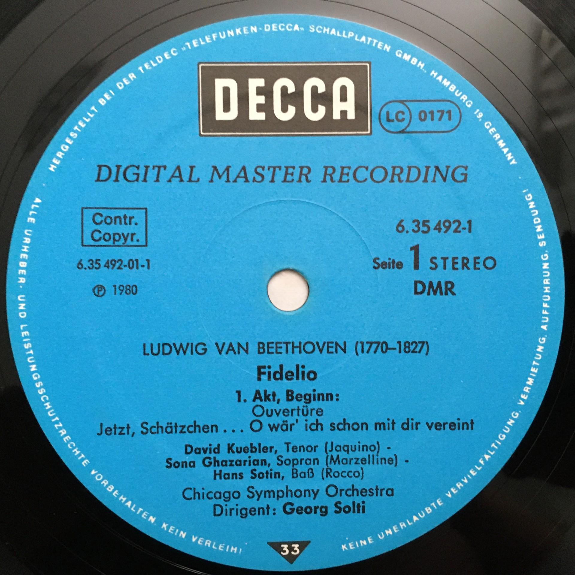 E034 Beethoven Fidelio Behrens Hofmann Solti 3LP DECCA 6.35492 Digital Stereo