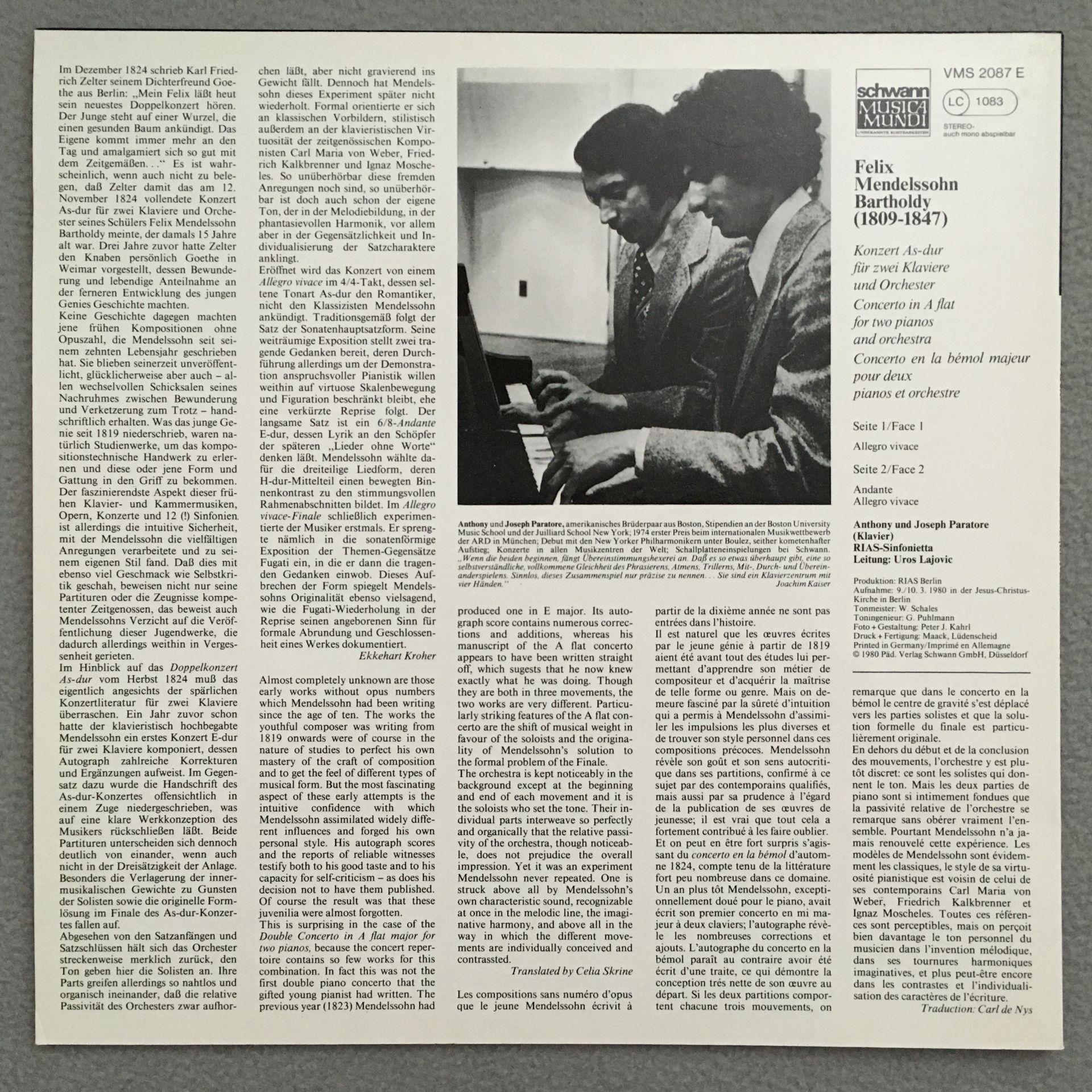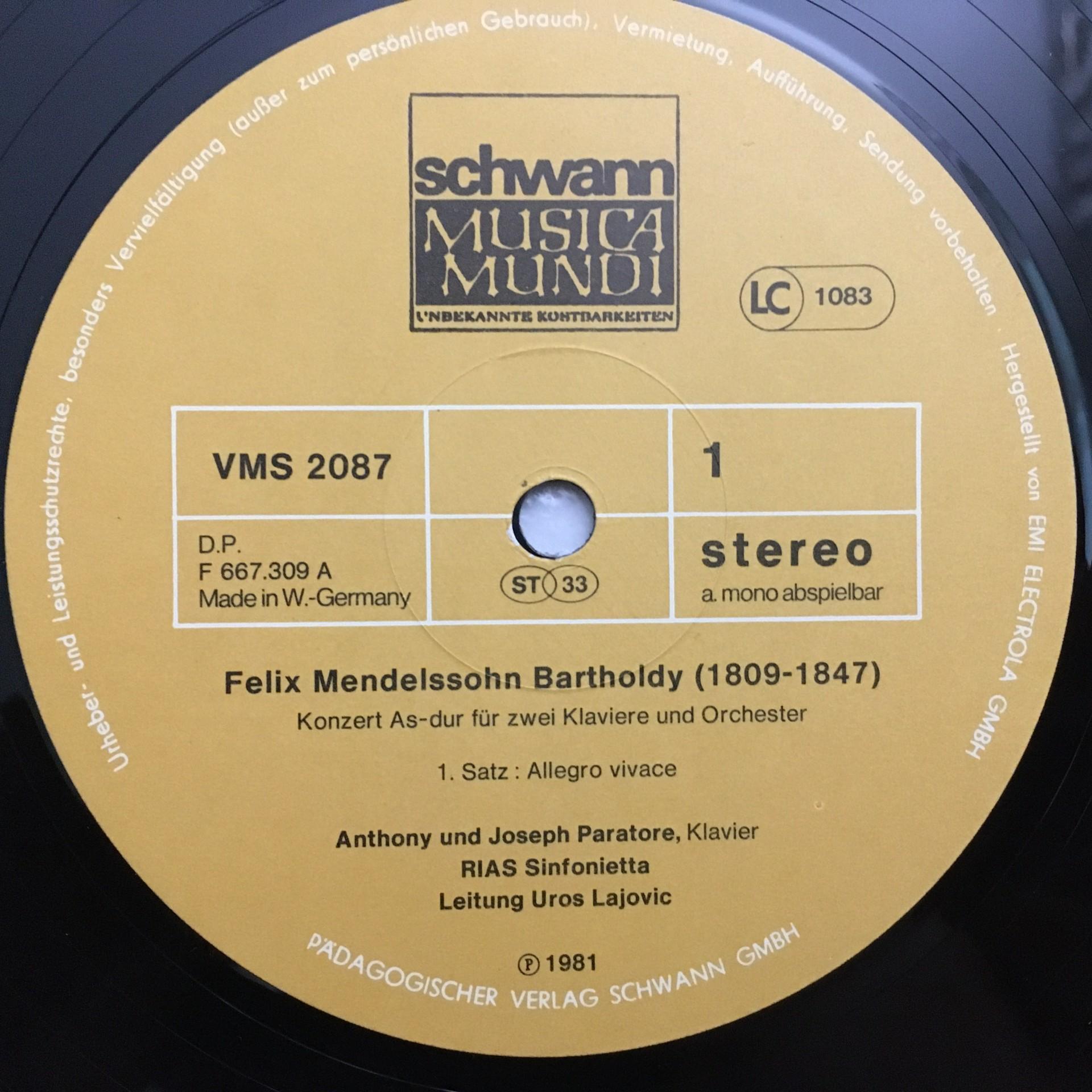Q600 Mendelssohn Concerto for 2 Pianos A. & J. Paratore Schwann VMS 2087 Stereo