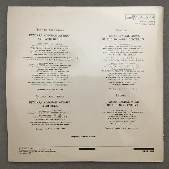 R230 Russian Choral Music 16-18 Centuries Yurlov 2LP Melodiya C 01645-48 Stereo