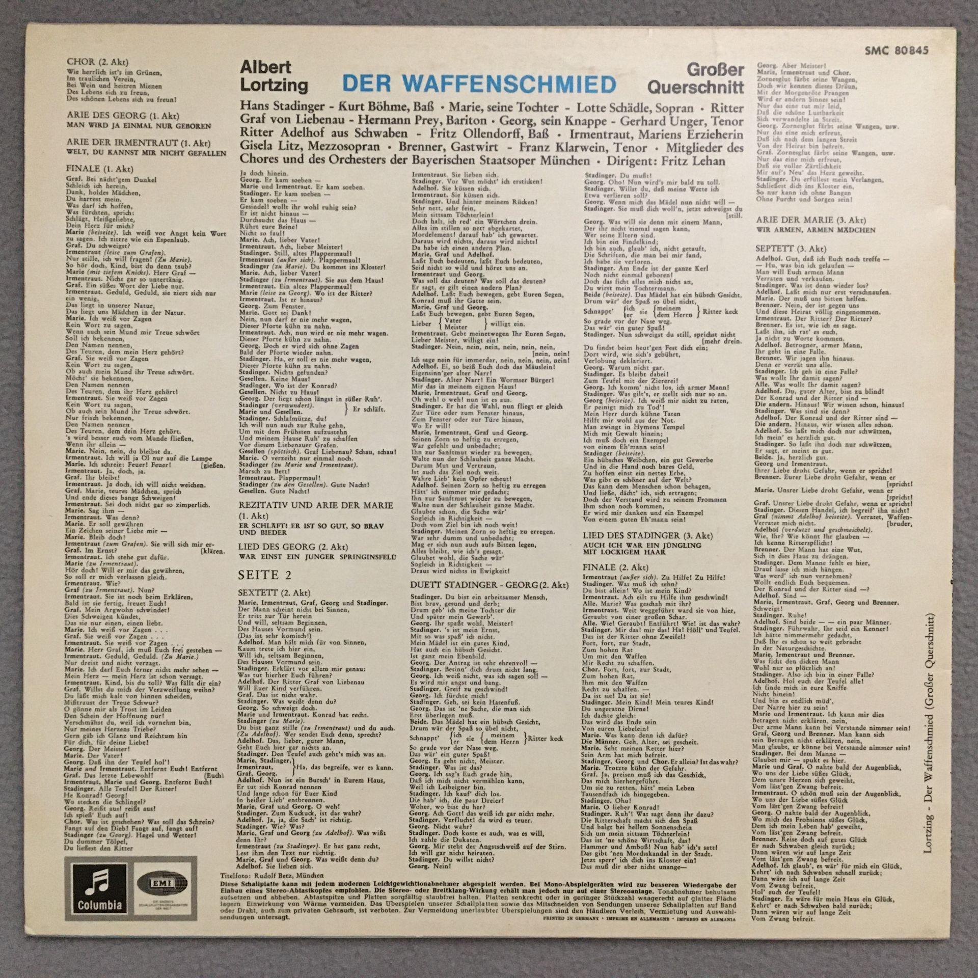 Q626 Lortzing Waffenschmied Prey Lehan Columbia w/g SMC 80 845 Stereo