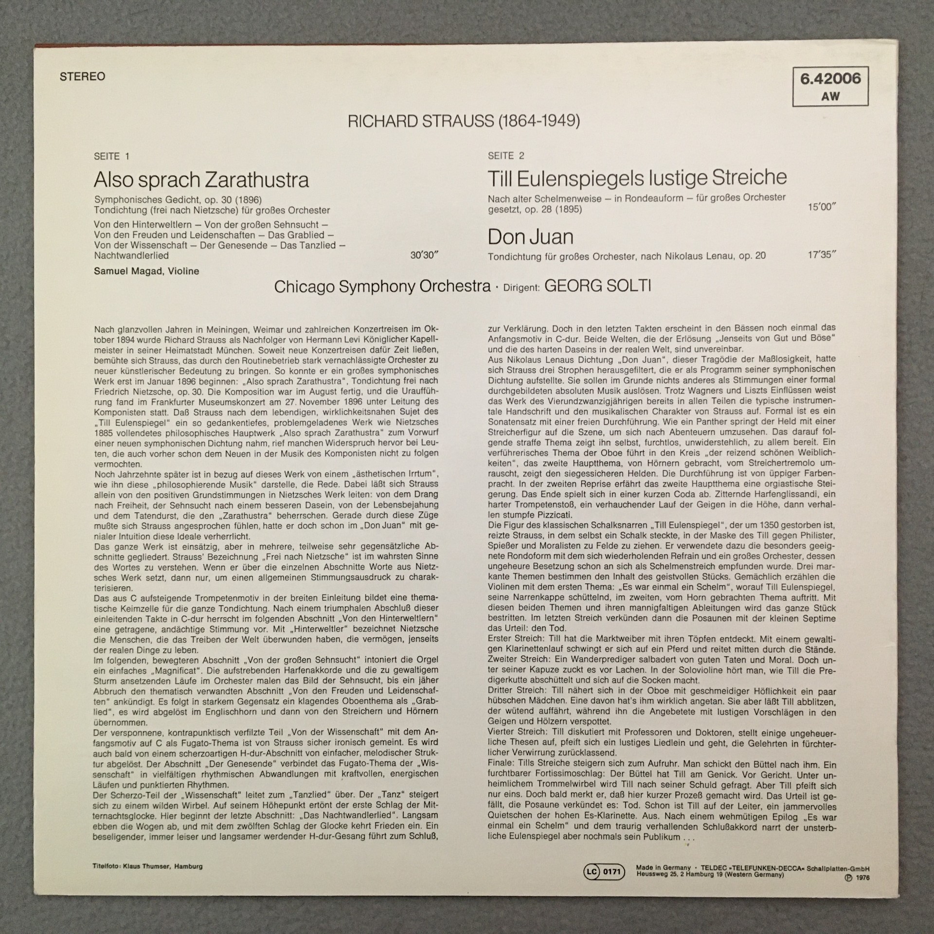 R234 R. Strauss Also sprach Zarathustra Don Juan Solti DECCA 6.42006 AW Stereo
