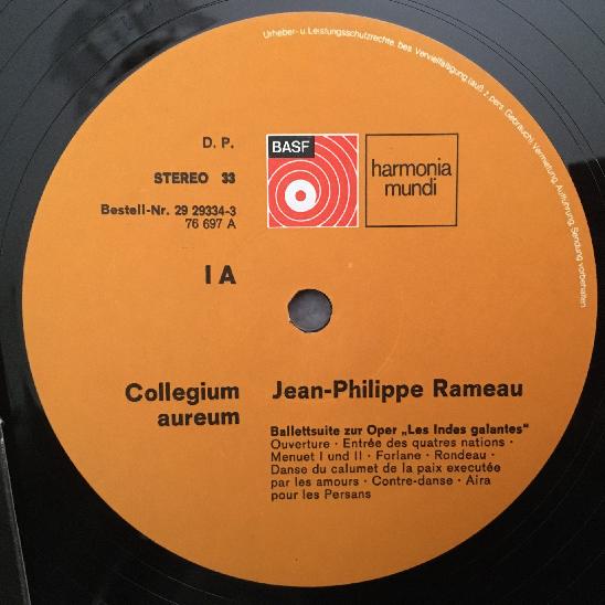 R237 Rameau Festive Suites Collegium Aureum 2LP HM 29 29334-3 Stereo