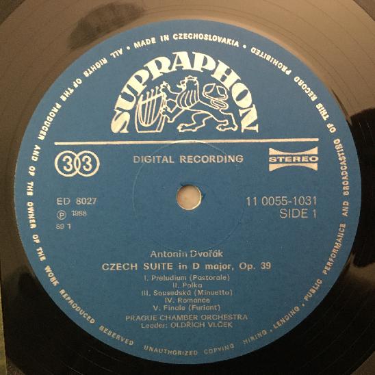 R239 Dvorak Suite Janacek Suite for Strings Vlcek Supraphon 11 0055-1 Digital St