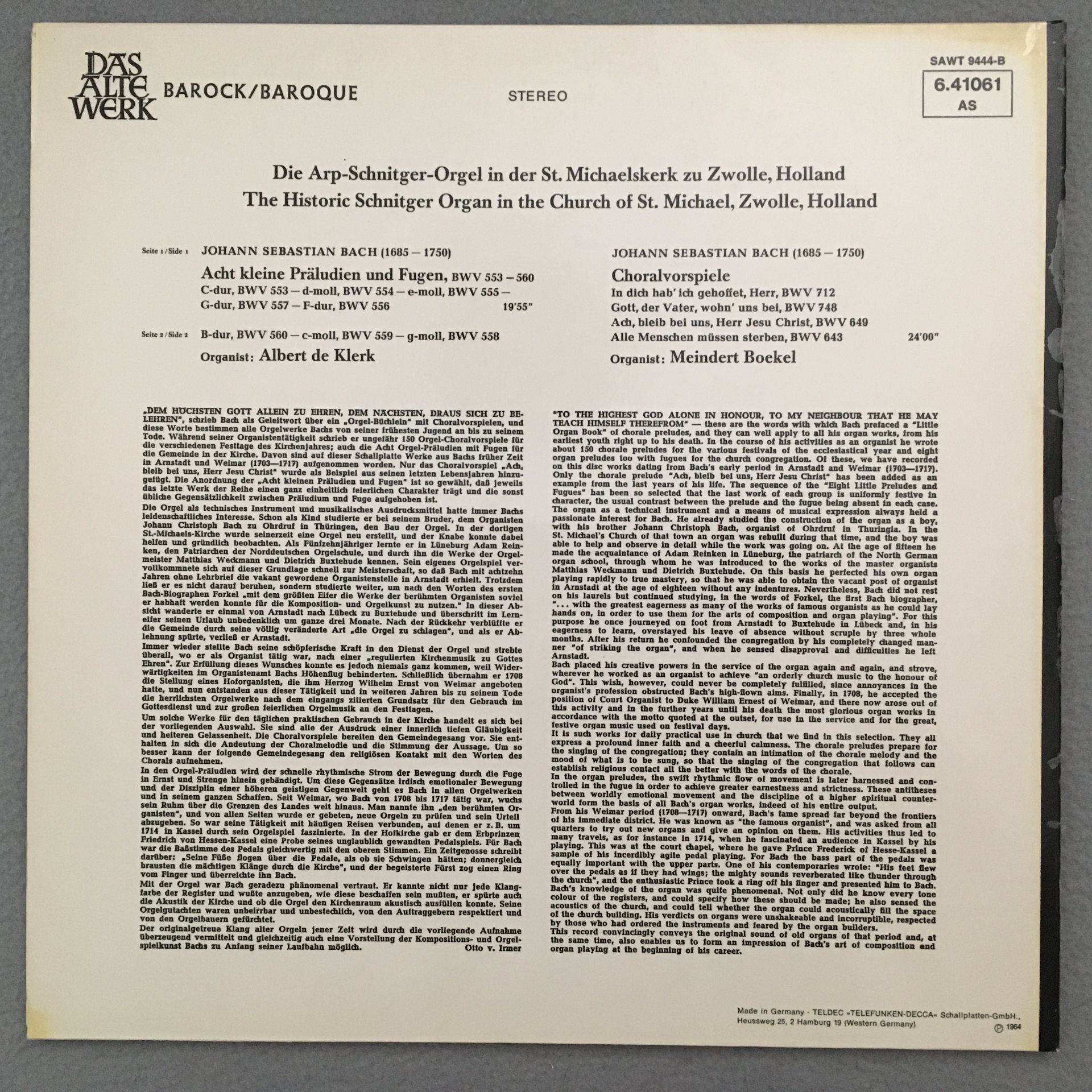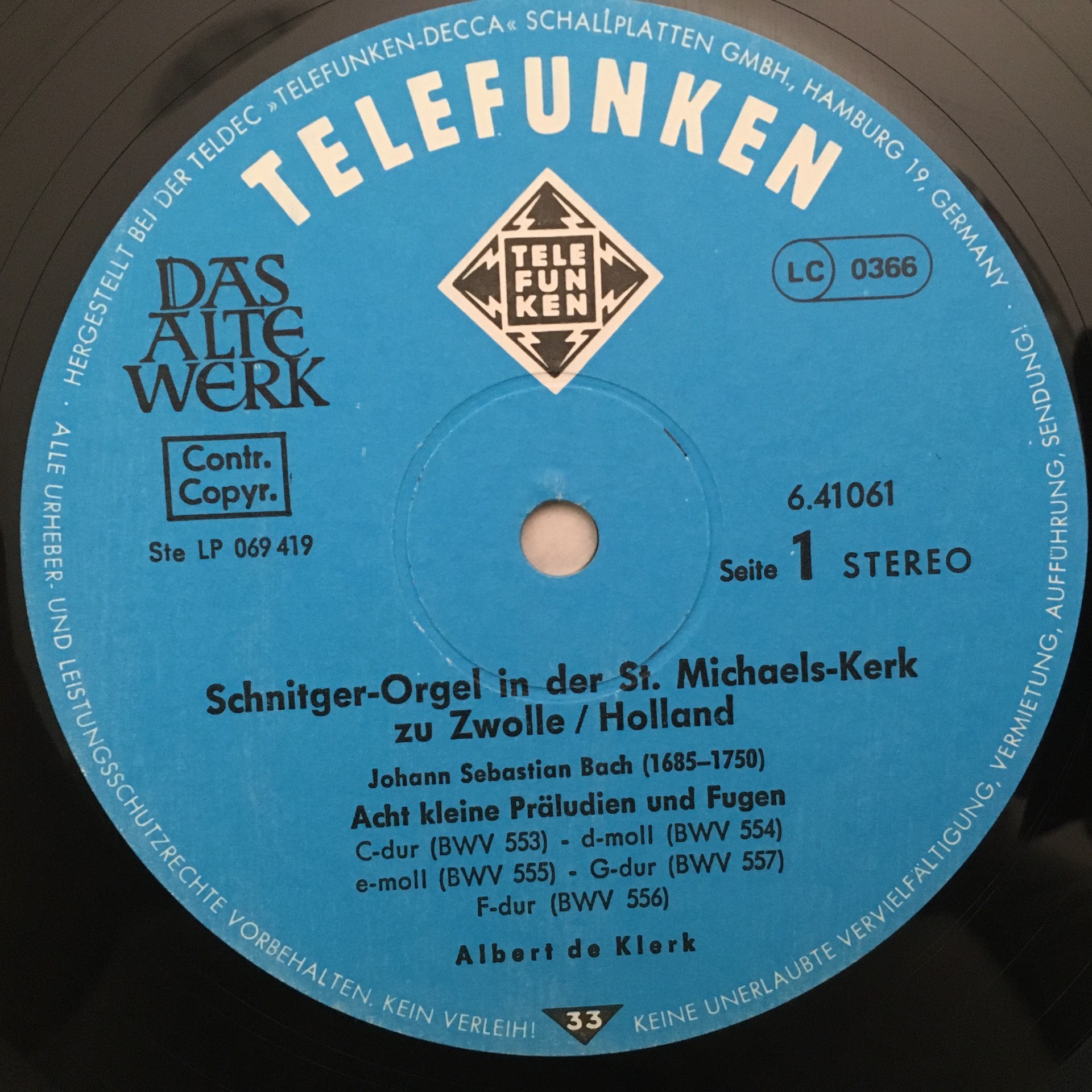 R250 Bach Little Preludes & Fugues de Klerk Boekel Telefunken 6.41061 AS Stereo