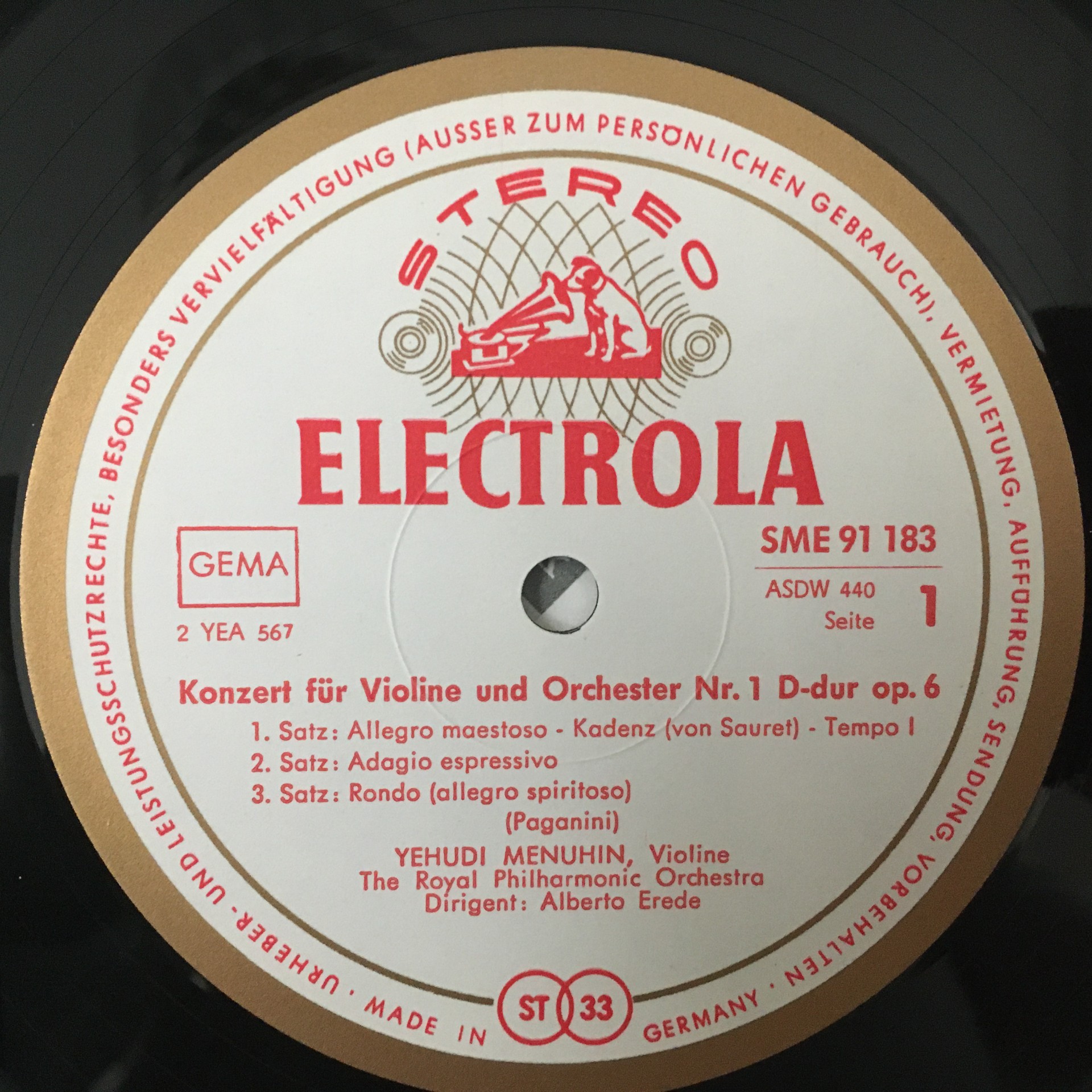 R252 Paganini Violin Concertos No.1, 2 Menuhin Erede Electrola w/g SME 91 183 St