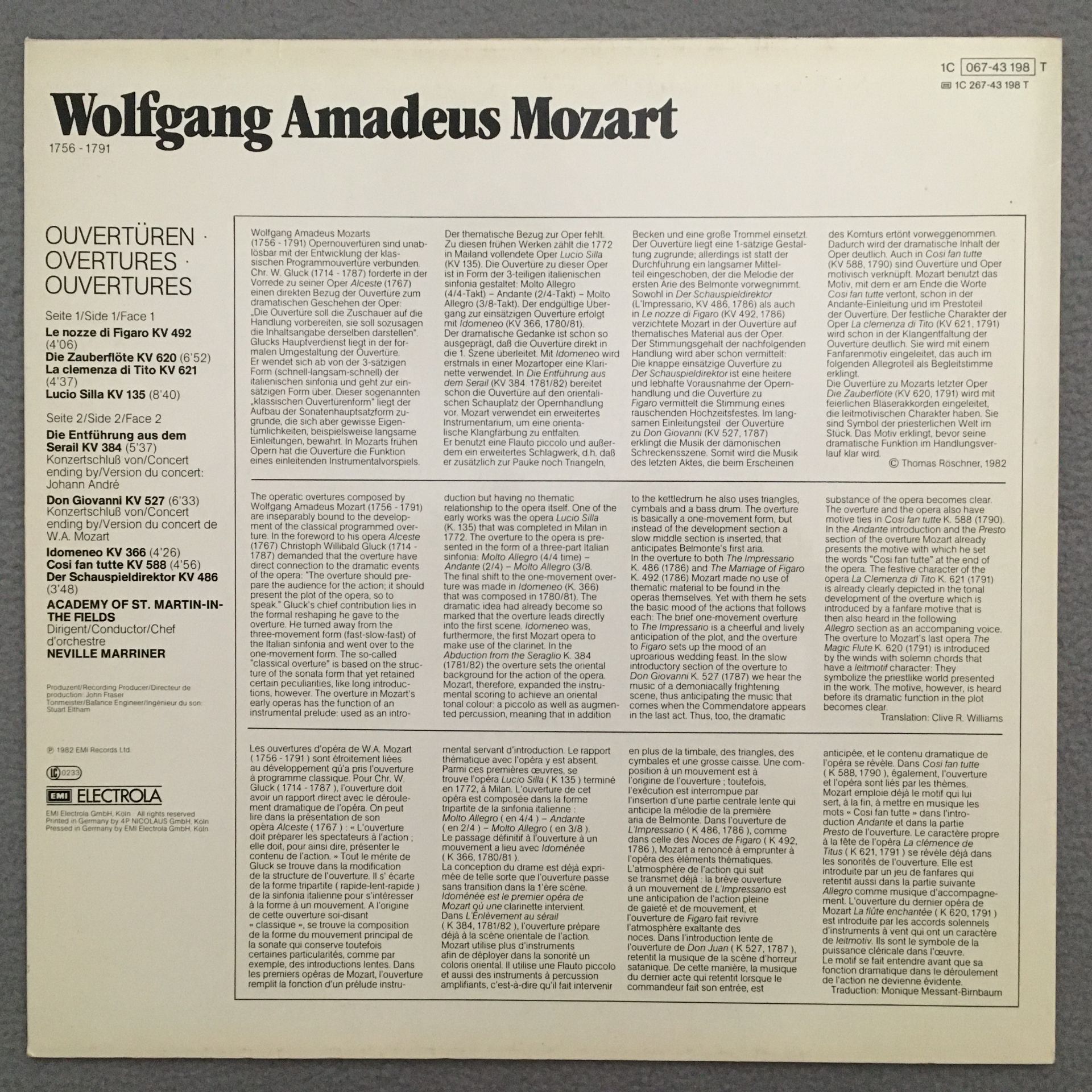 R258 Mozart Overtures Marriner EMI 1C 067-43 198 T Digital Stereo