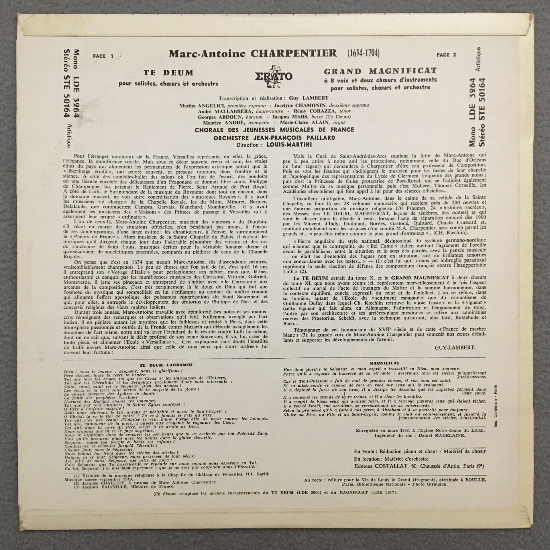 R264 Charpentier Te Deum Magnificat Martini Erato STE 50164 Stereo