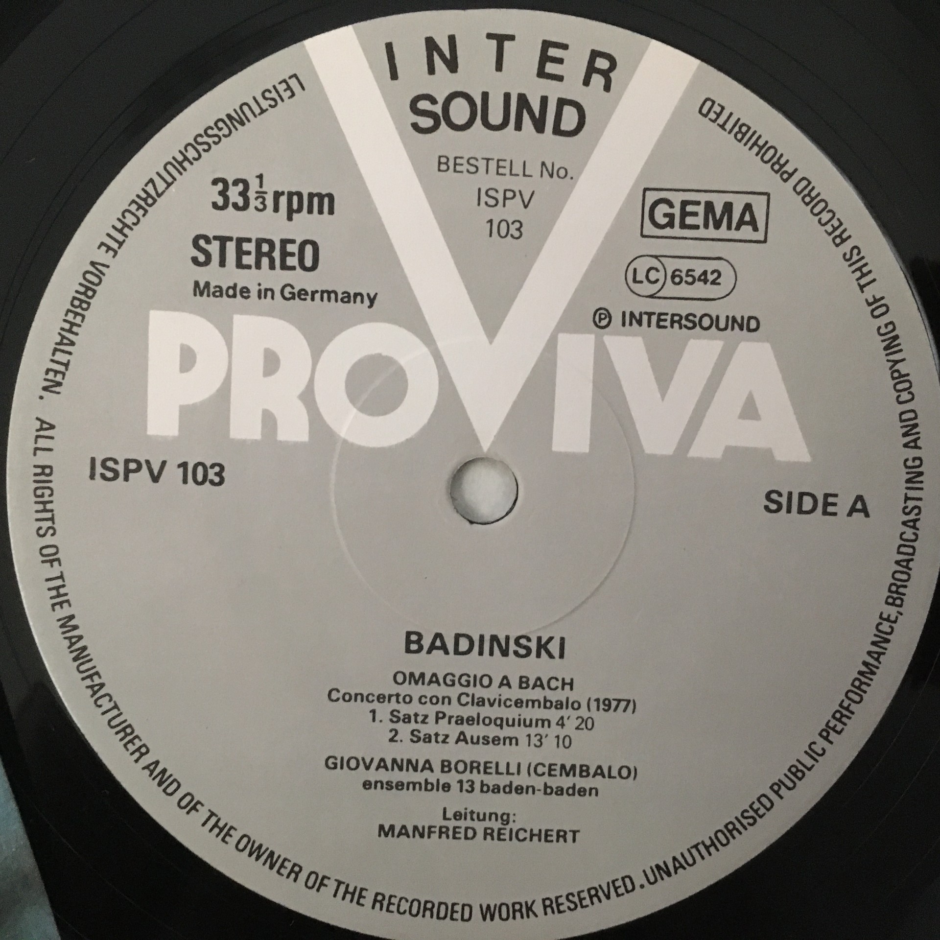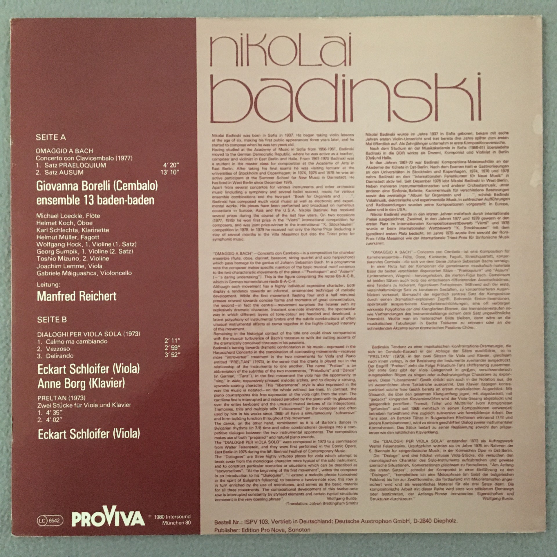R266 Badinski Hommage to Bach Reichert Borg Proviva IS PV 103 Stereo