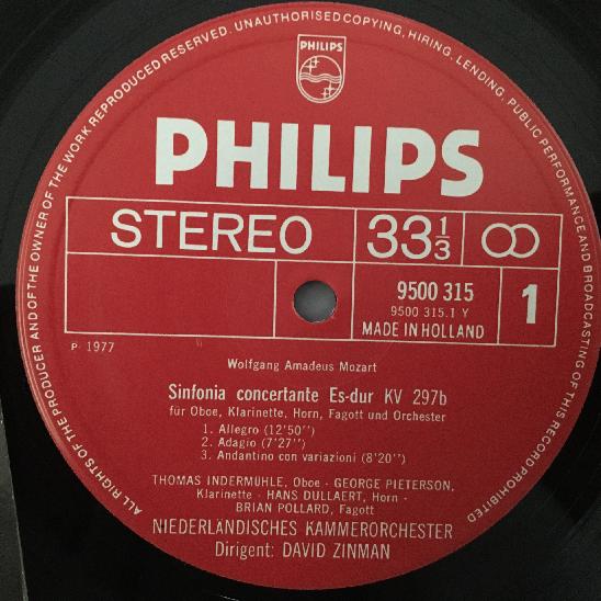 R268 Mozart Sinfonia Concertante Zinman Philips 9500 315 Stereo
