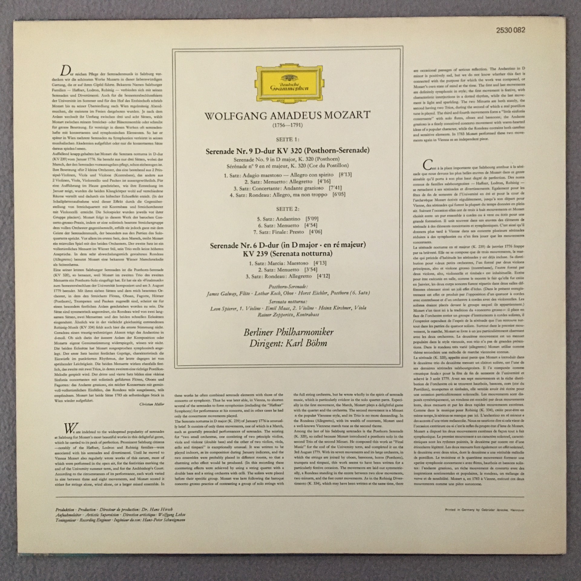 R270 Mozart Serenades Galway Koch Bohm DGG 2530 082 Stereo