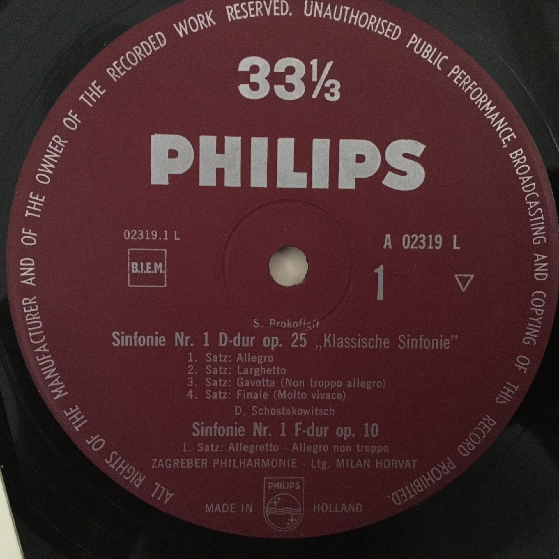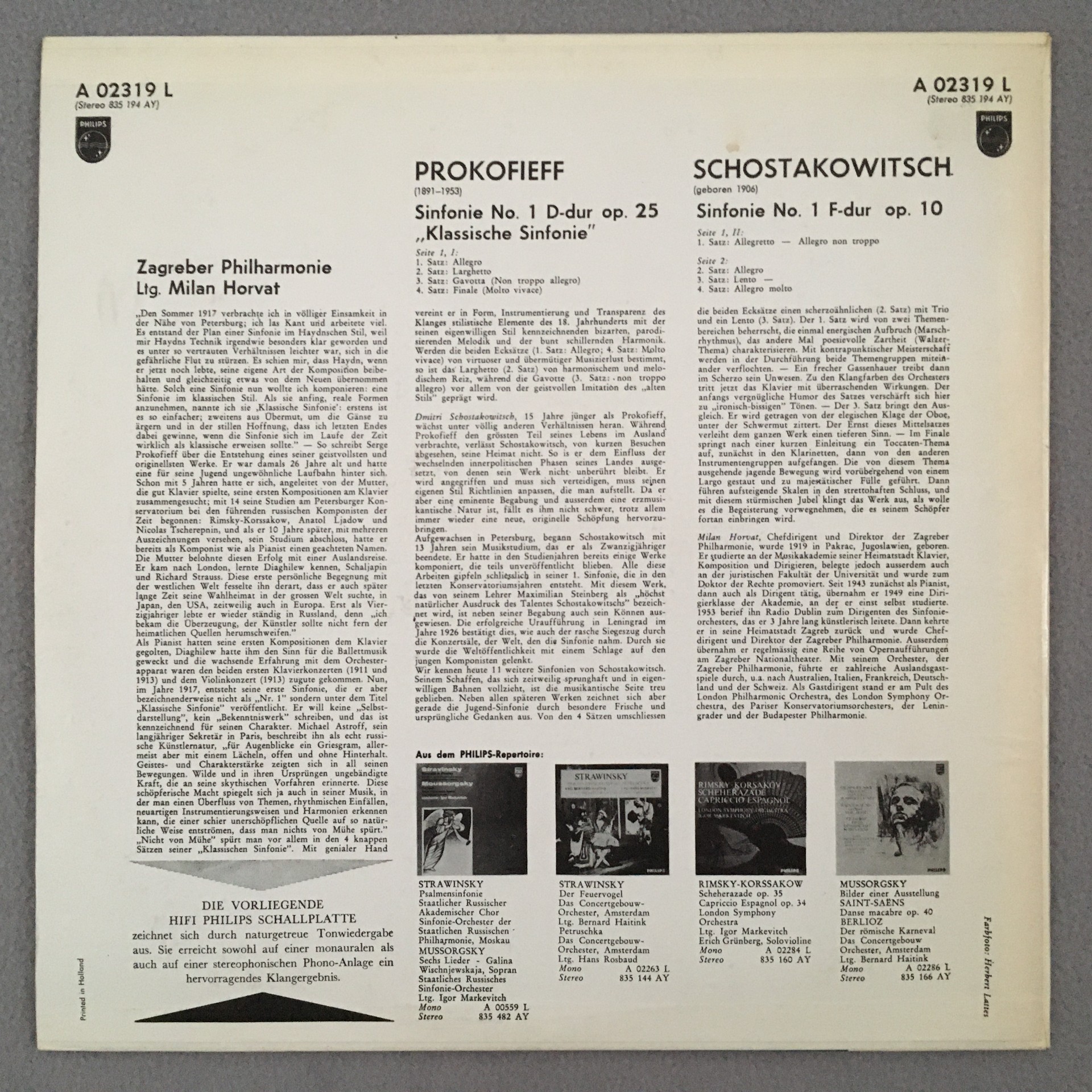 R274 Prokofiev Shostakovich Symphonies Horvat Philips A 02319 L