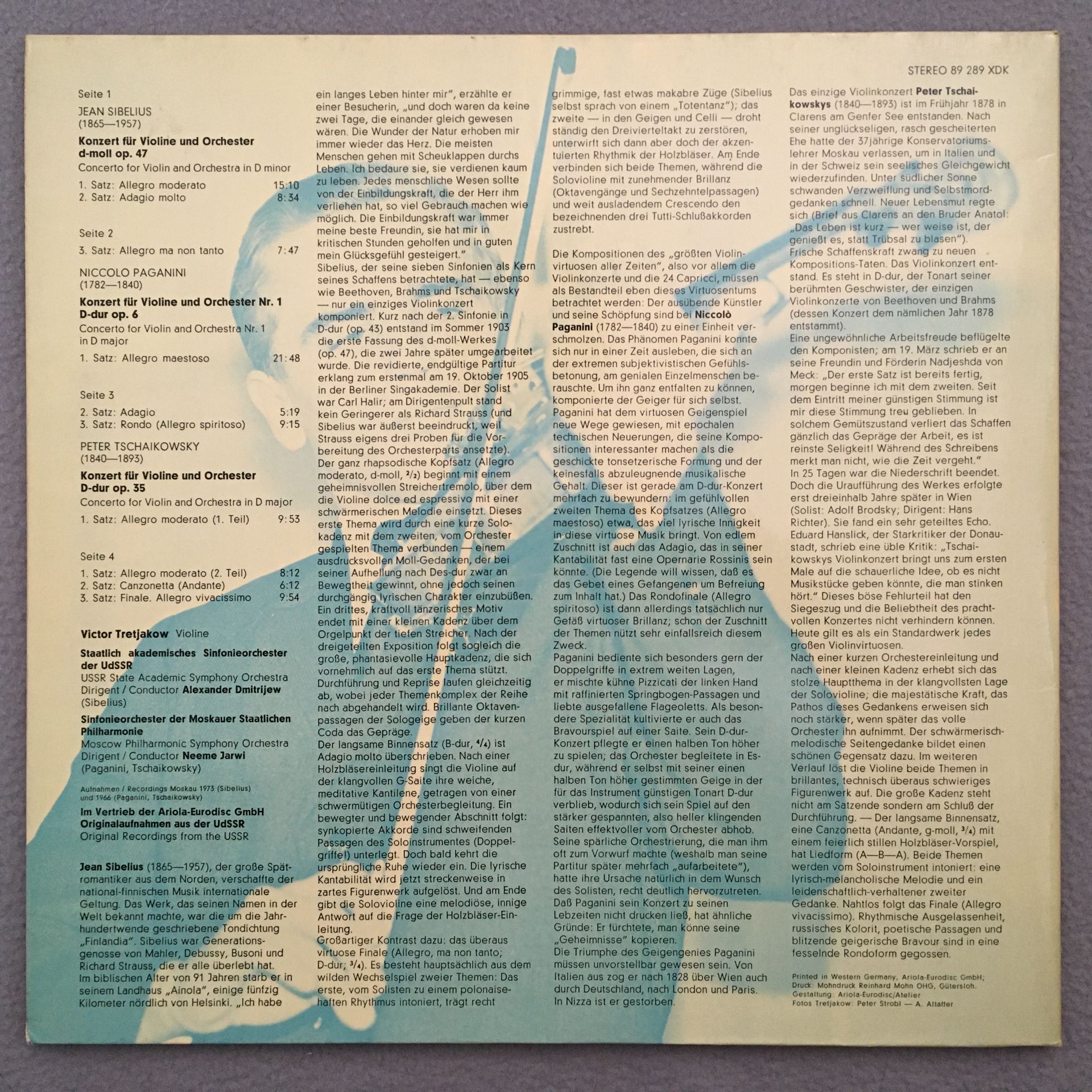 R304 Paganini Tchaikovsky Concertos Tretjakow 2LP Eurodisc 89 289 XDK St PROMO