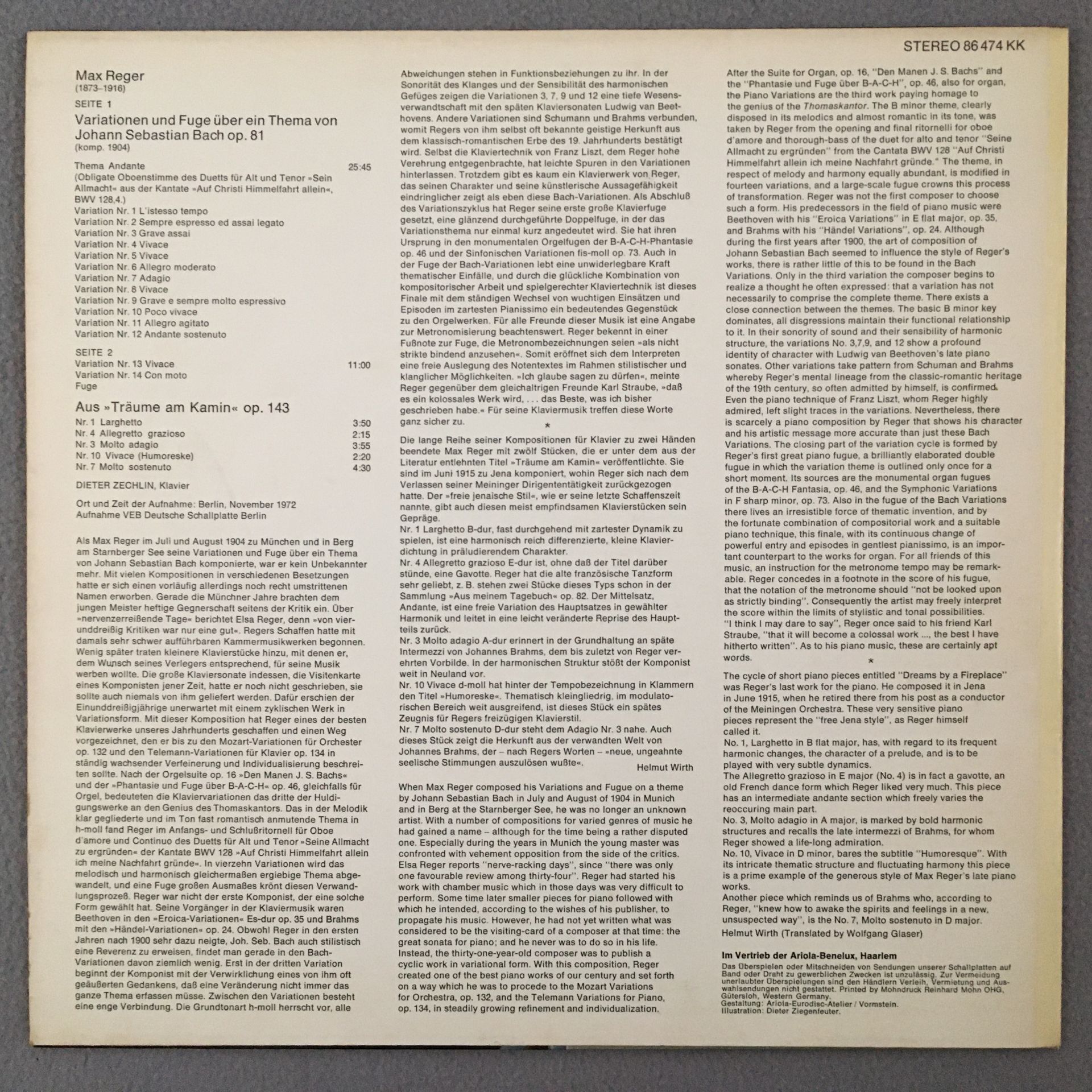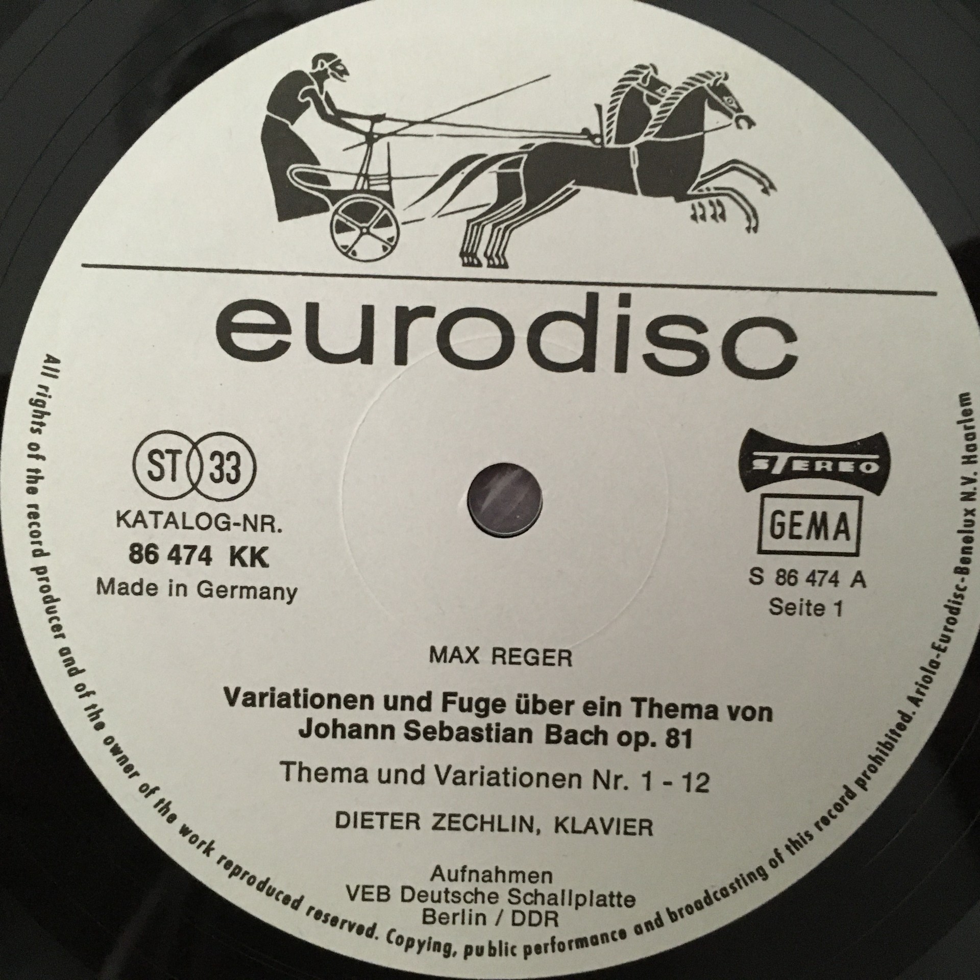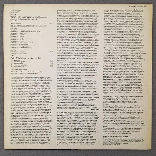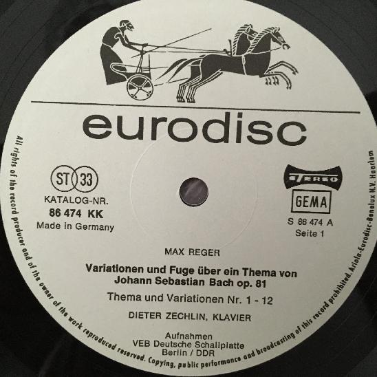 R311 Reger Bach Variations & Fugue Op.81 Zechlin Eurodisc 86 474 KK Stereo PROMO