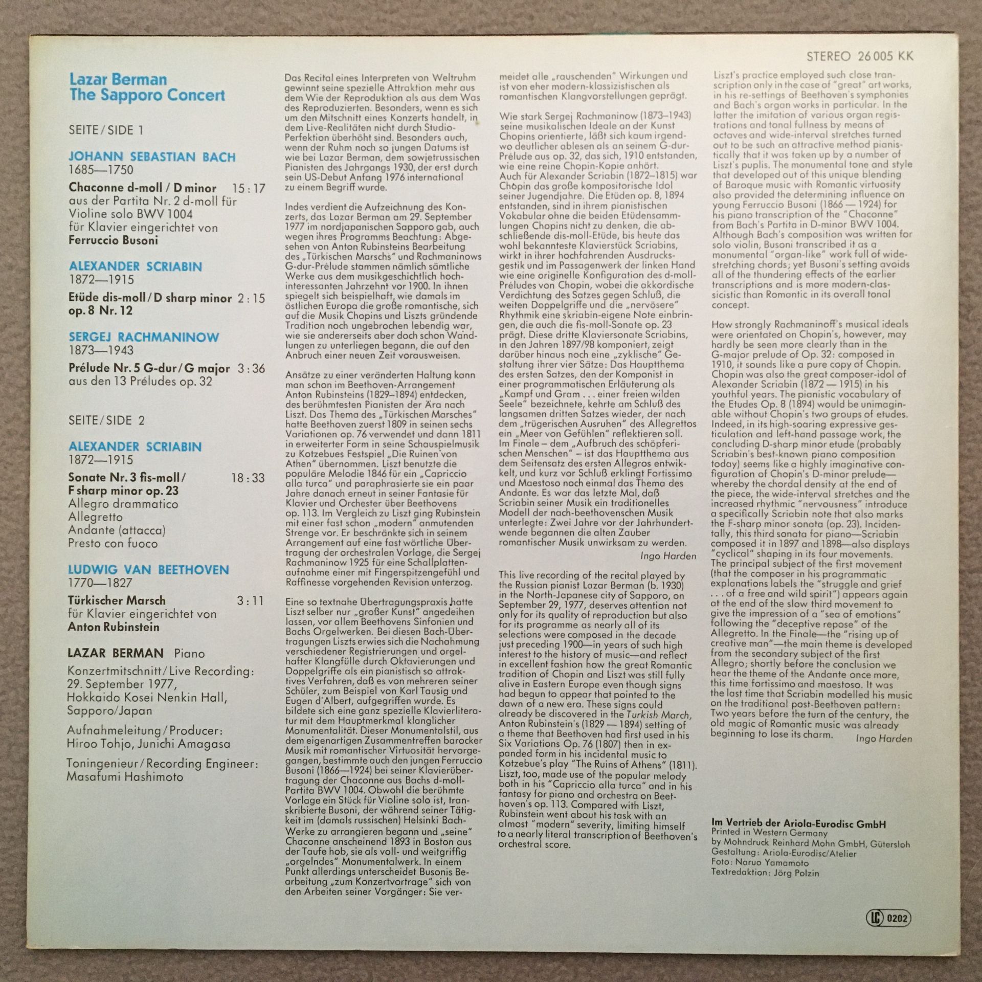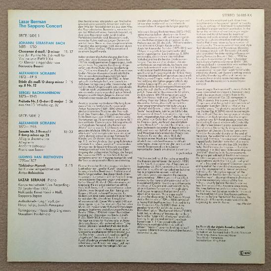 R313 Berman Piano Sapporo Concert Bach Scriabin Eurodisc 26 005 KK Stereo PROMO