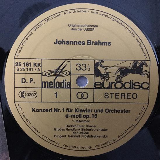 R314 Brahms Piano Concerto No.1 Kerer Rozhdestvensky Eurodisc 25 161 KK Stereo