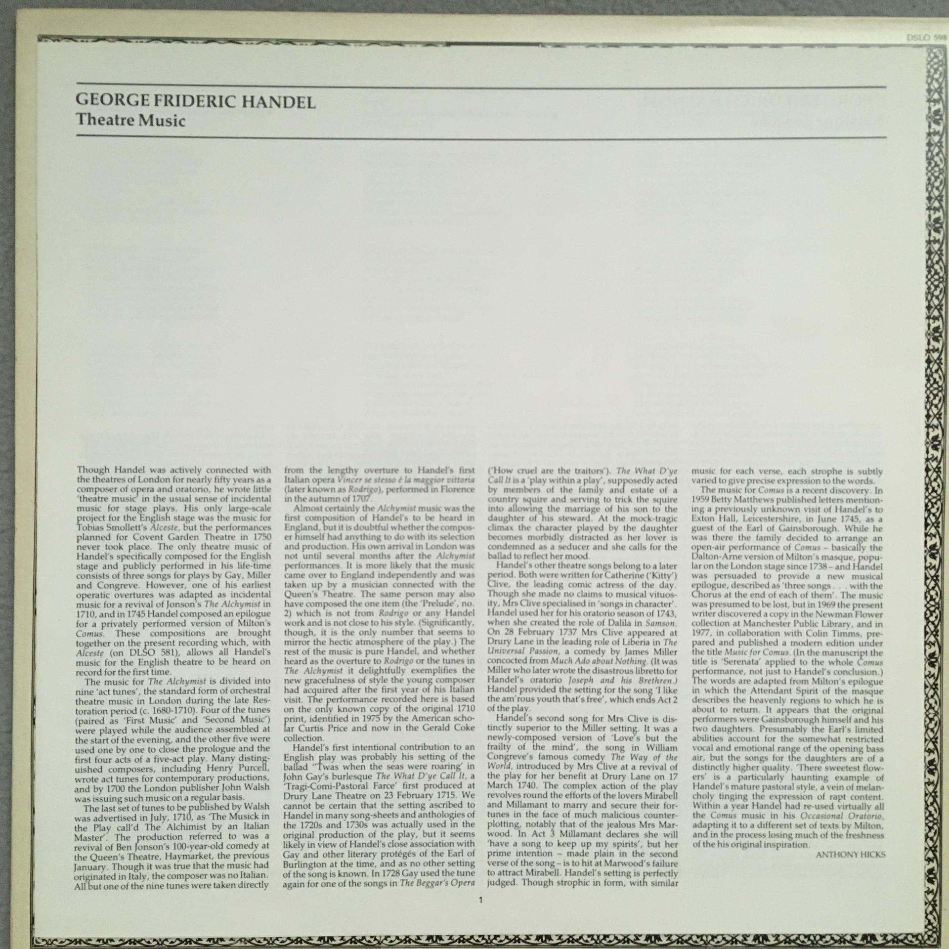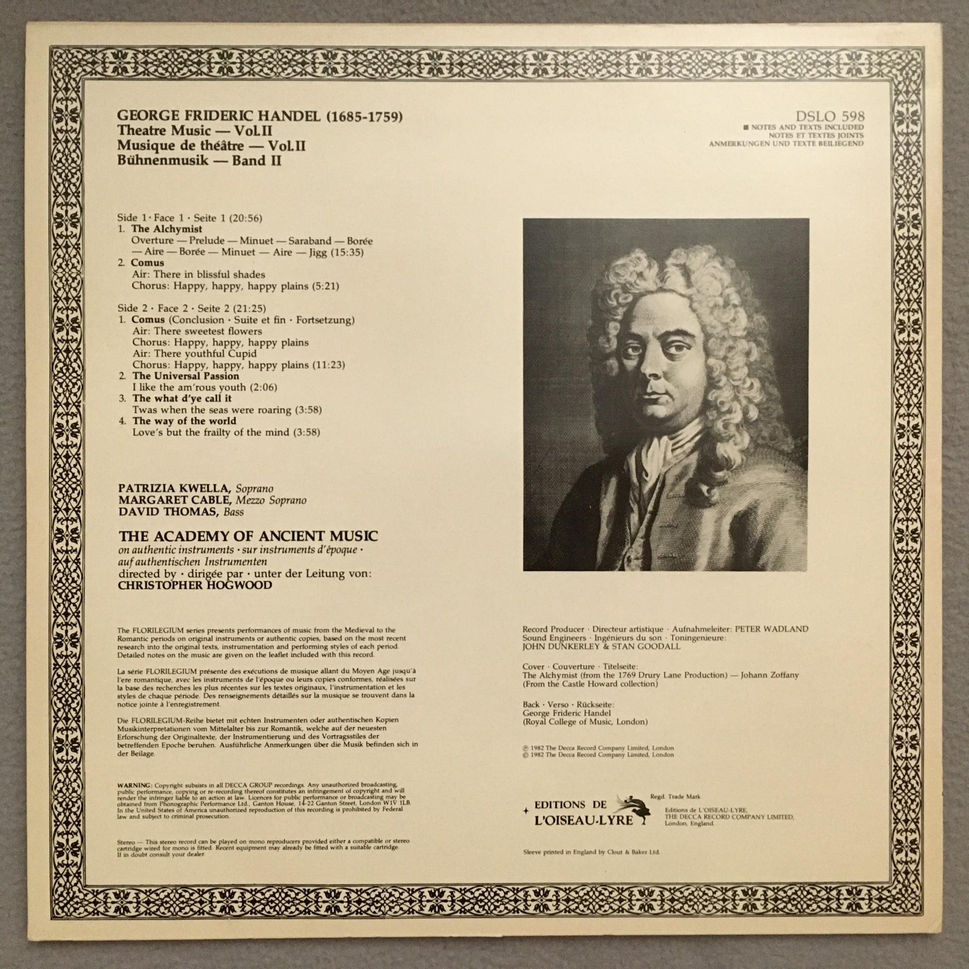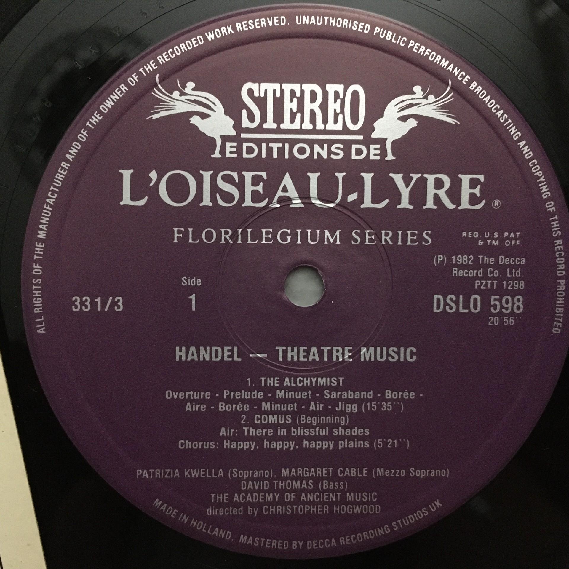 Q646 Handel Theatre Music Hogwood L´Oiseau-Lyre DSLO 598