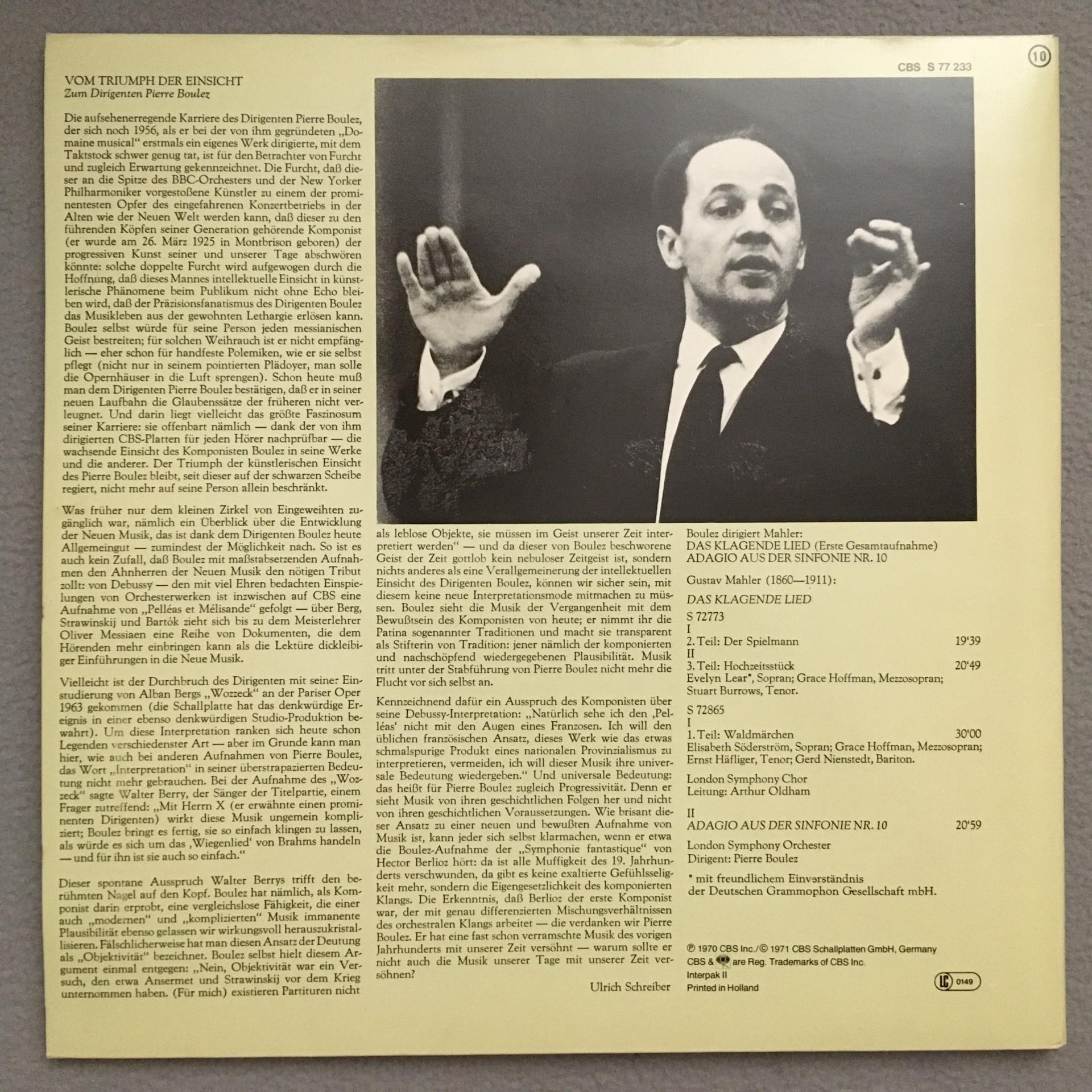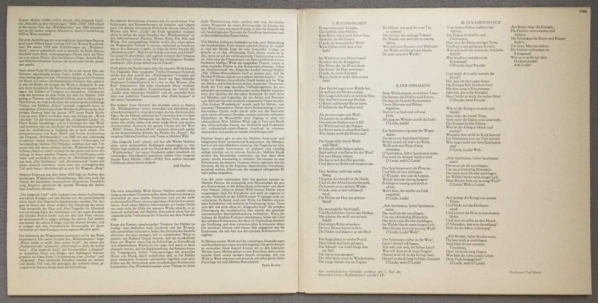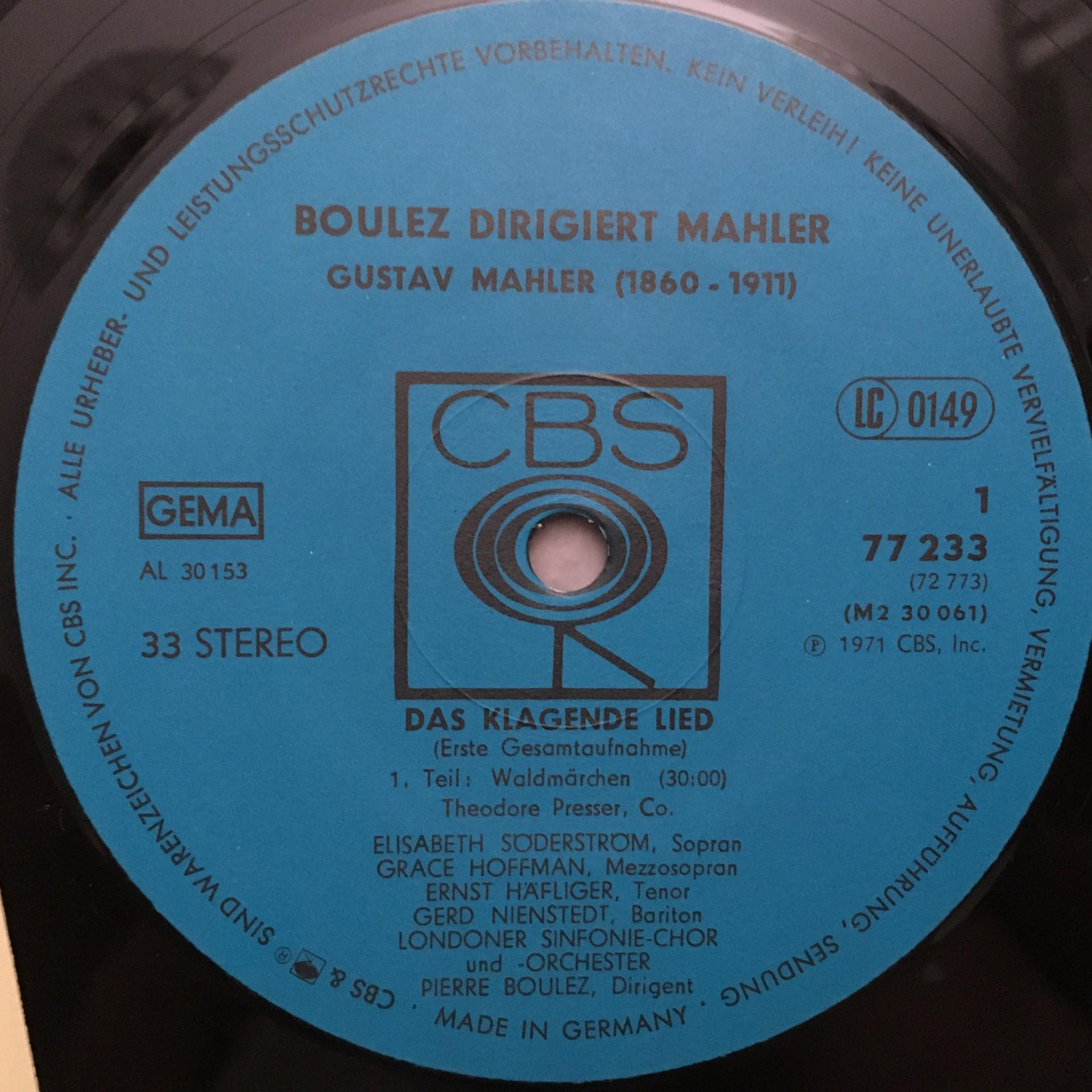 Q651 Mahler Das klagende Lied Lear Häfliger Boulez 2LP CBS S 77 233 Stereo