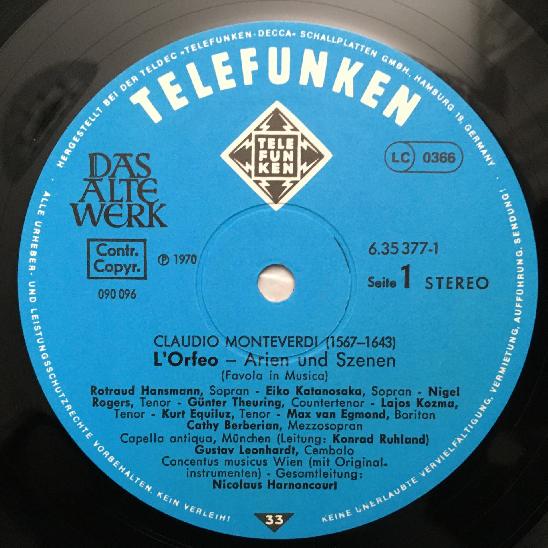 G355 Monteverdi L´Orfeo Ulisse Harnoncourt 3LP Telefunken 6.35377 EK Stereo