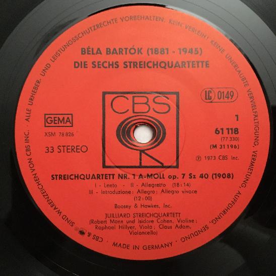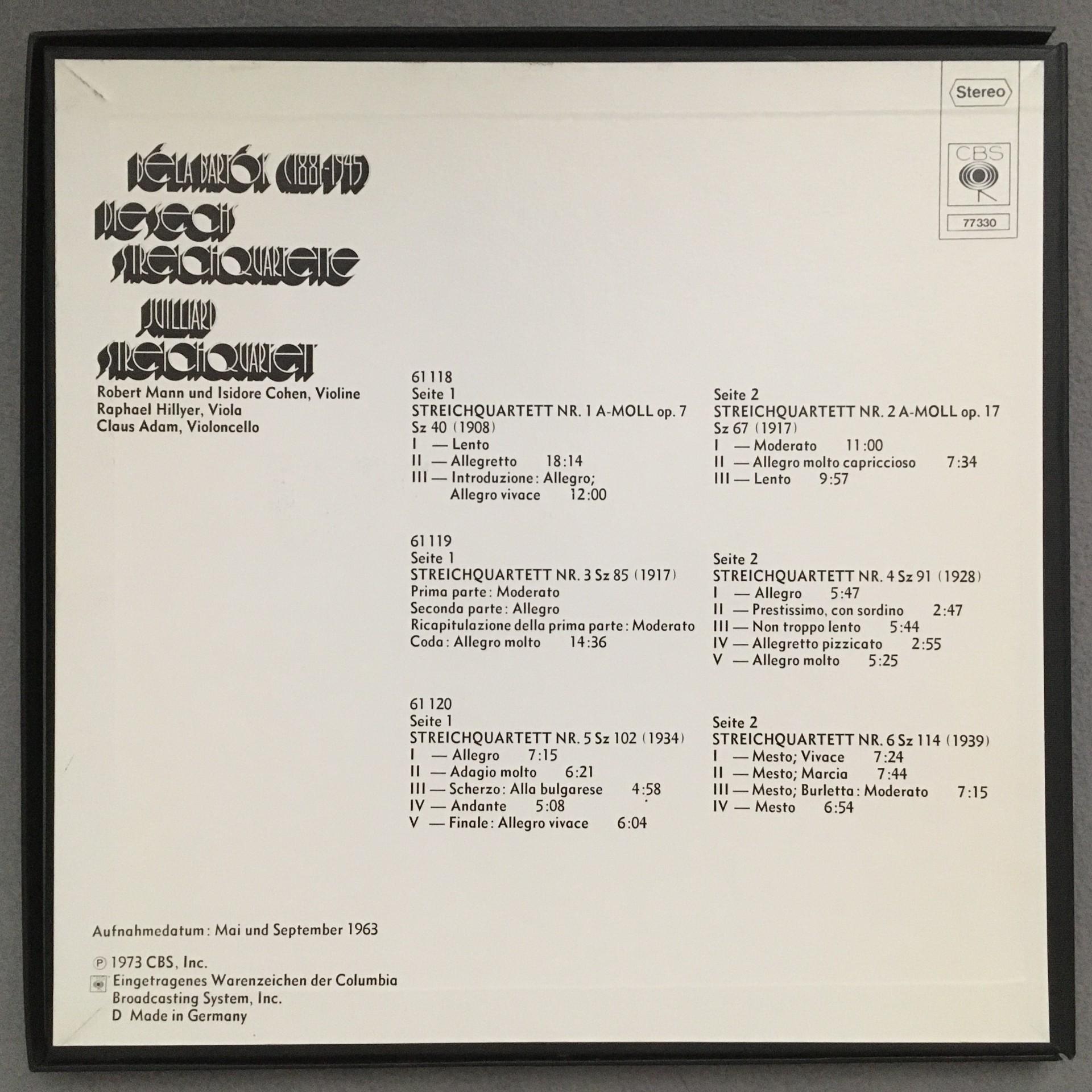G429 Bartok The 6 String Quartets Juilliard String Quartet 3LP CBS 77 330 Stereo