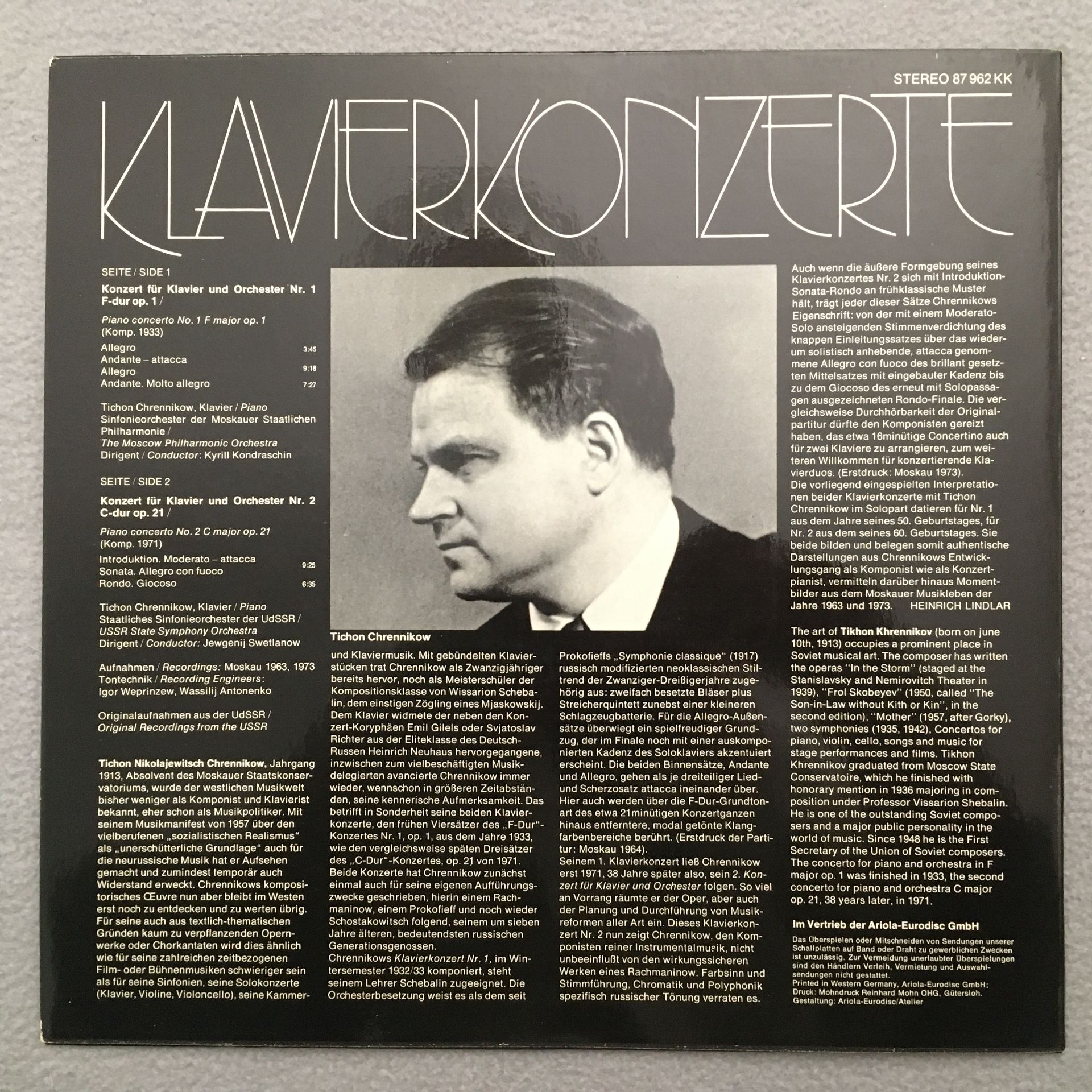 R316 Piano Concertos Chrennikow Kondrshin Swetlanow Eurodisc 87 962 KK St