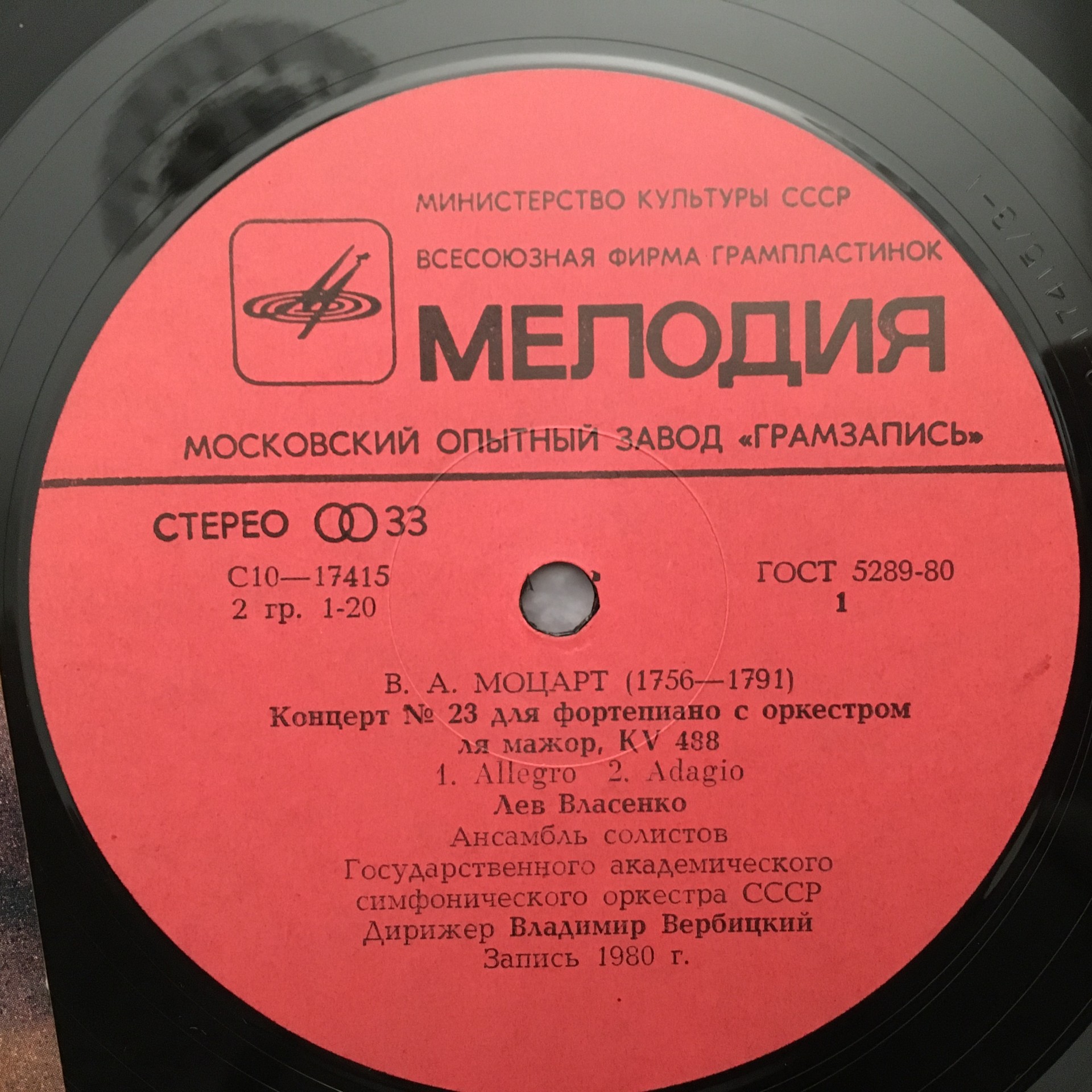 R317 Mozart Piano Concerto No.23 Vlasenko Melodiya C 10-17415-16 Stereo