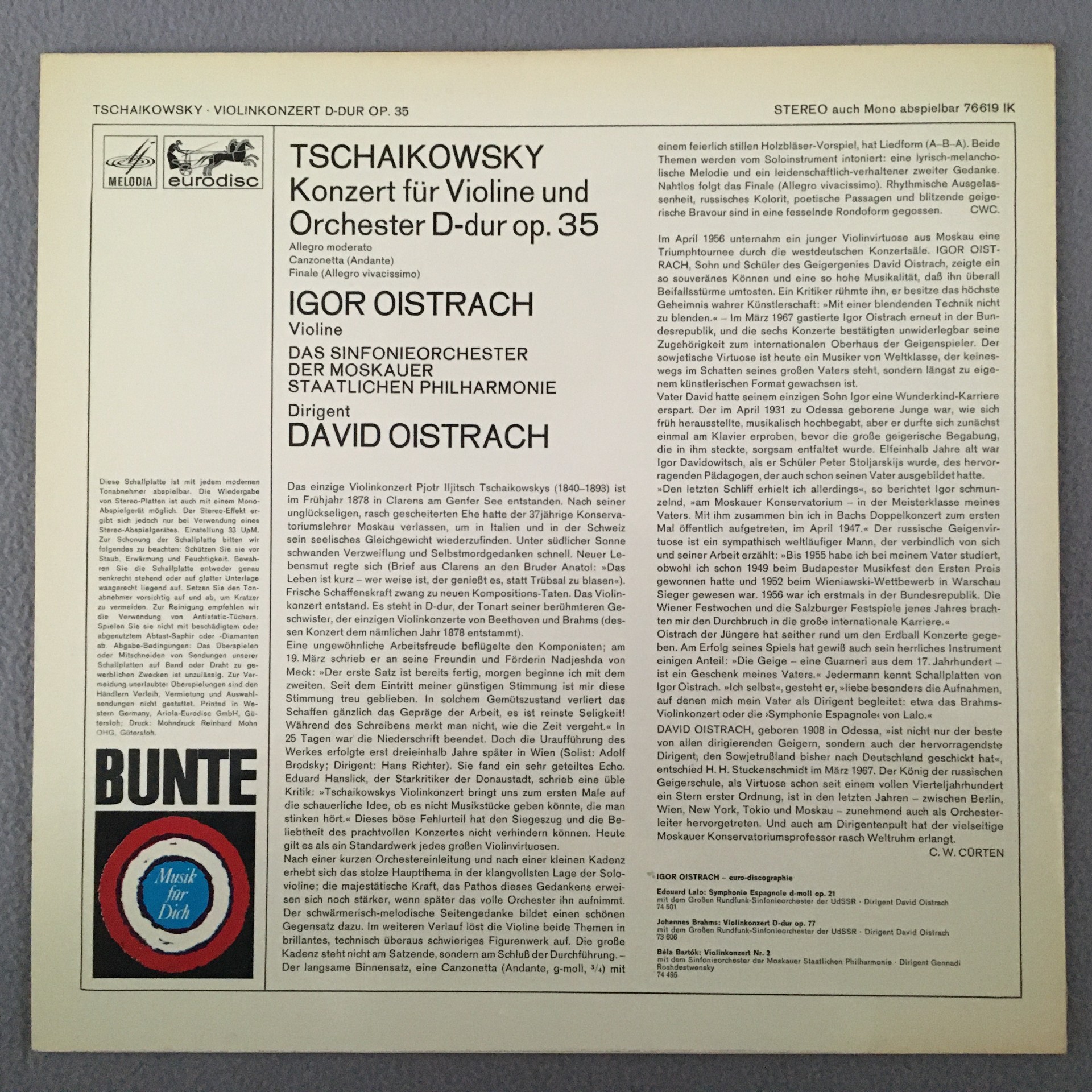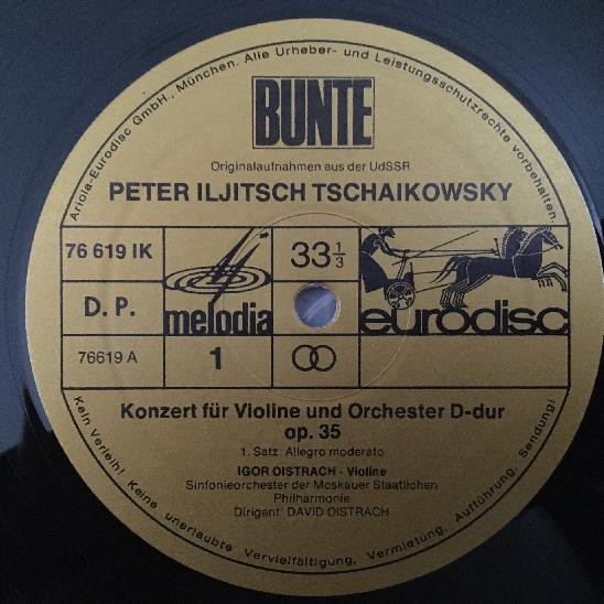 R327 Tchaikovsky Violin Concerto I. & D. Oistrakh Eurodisc 76 619 IK Stereo