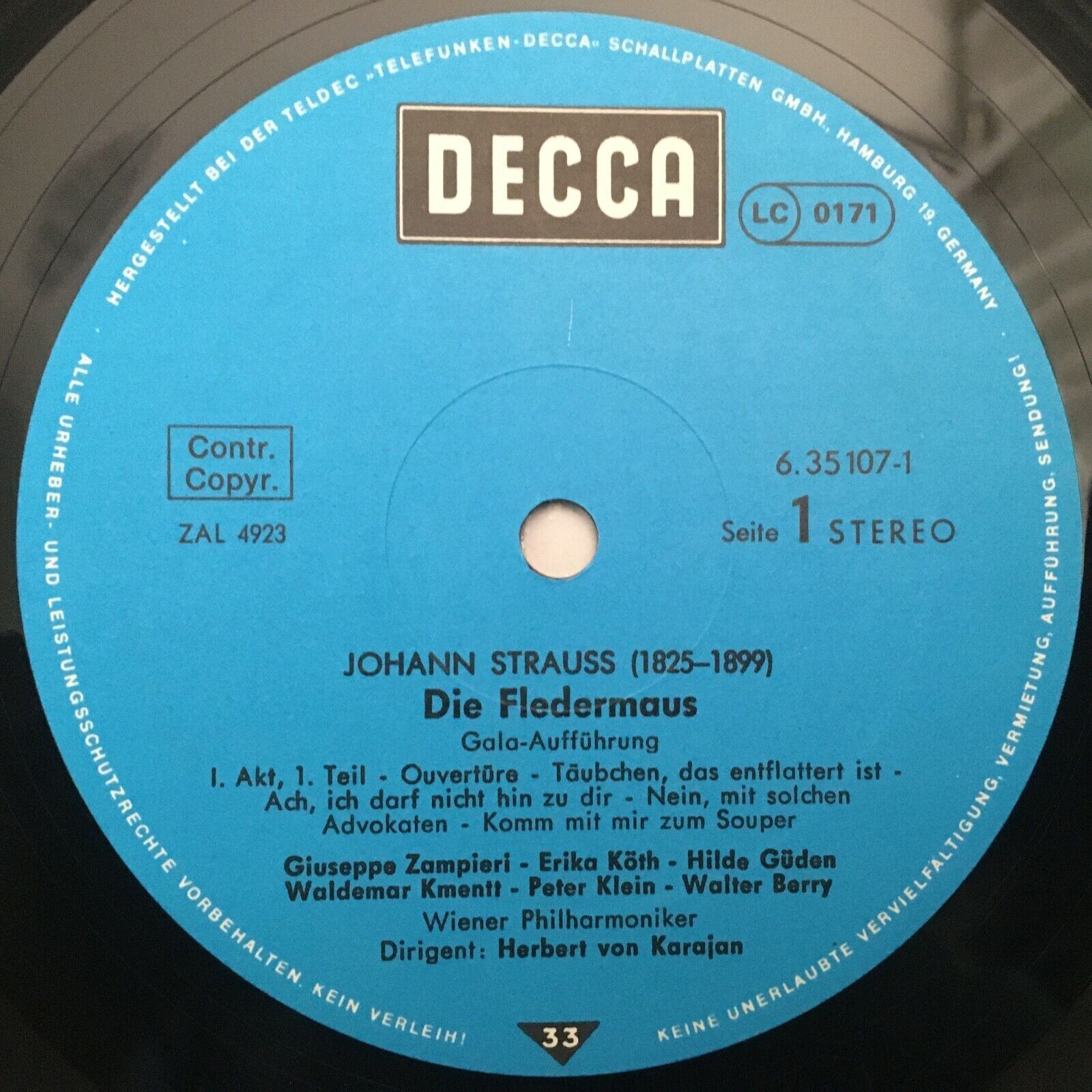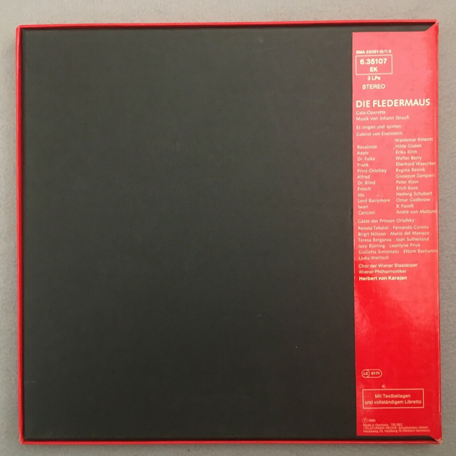 G500 J. Strauss Fledermaus Güden Kmentt Karajan VPO 3LP DECCA 6.35107 EK Stereo