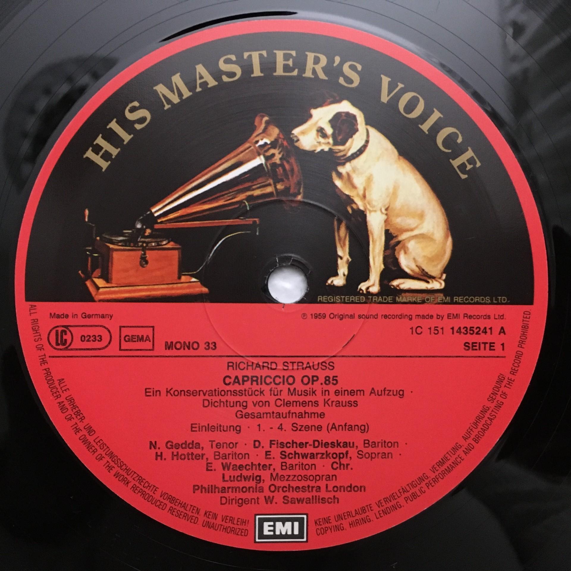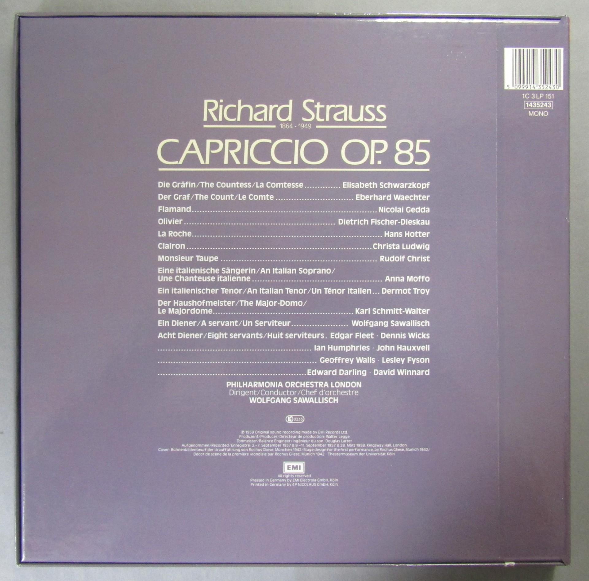 G547 R. Strauss Capriccio Fischer-Dieskau Schwarzkopf Sawallisch 3LP DGG 1435243
