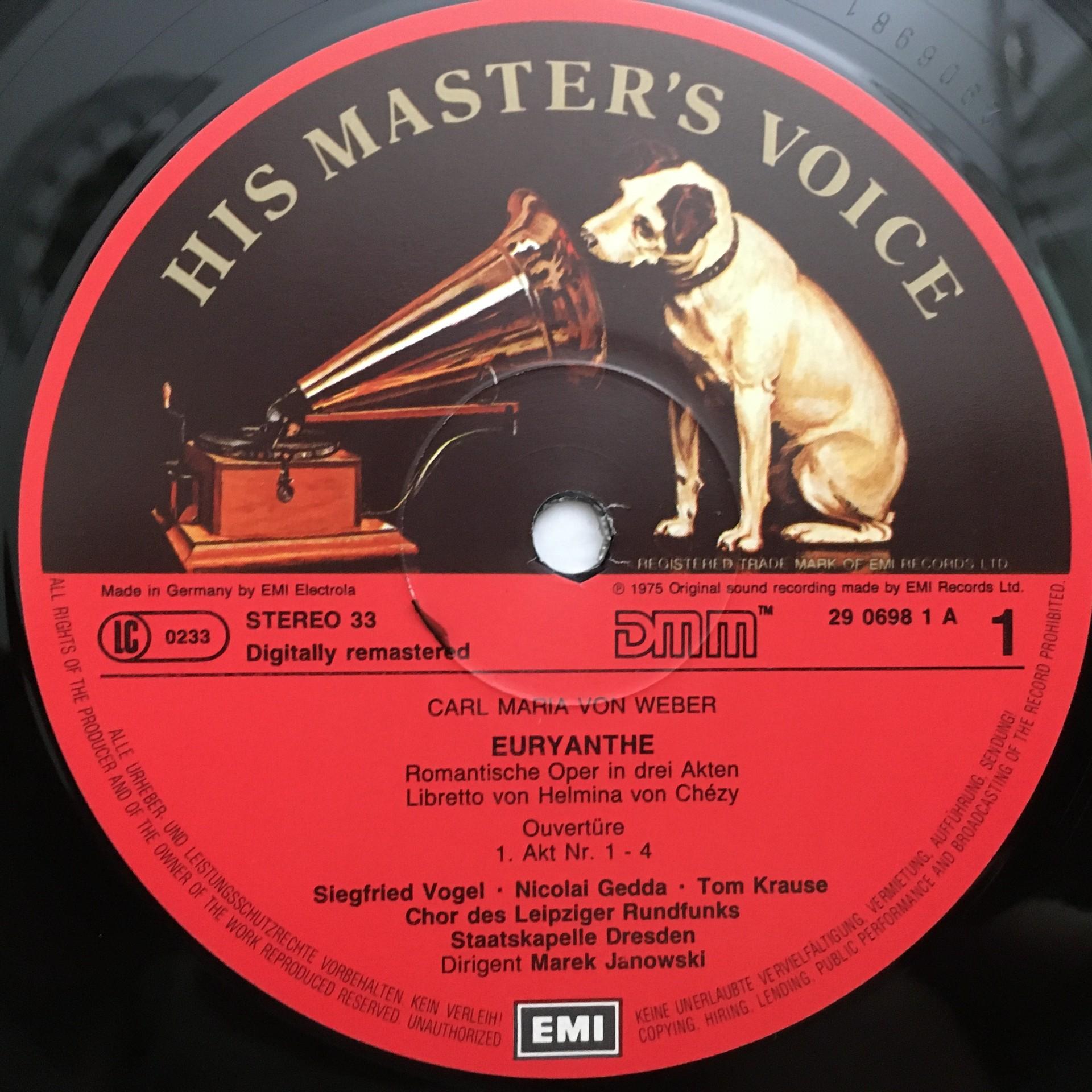 E050 Weber Euryanthe Norman Hunter Janowski 3LP EMI 153 29 0698 3 Digital Stereo