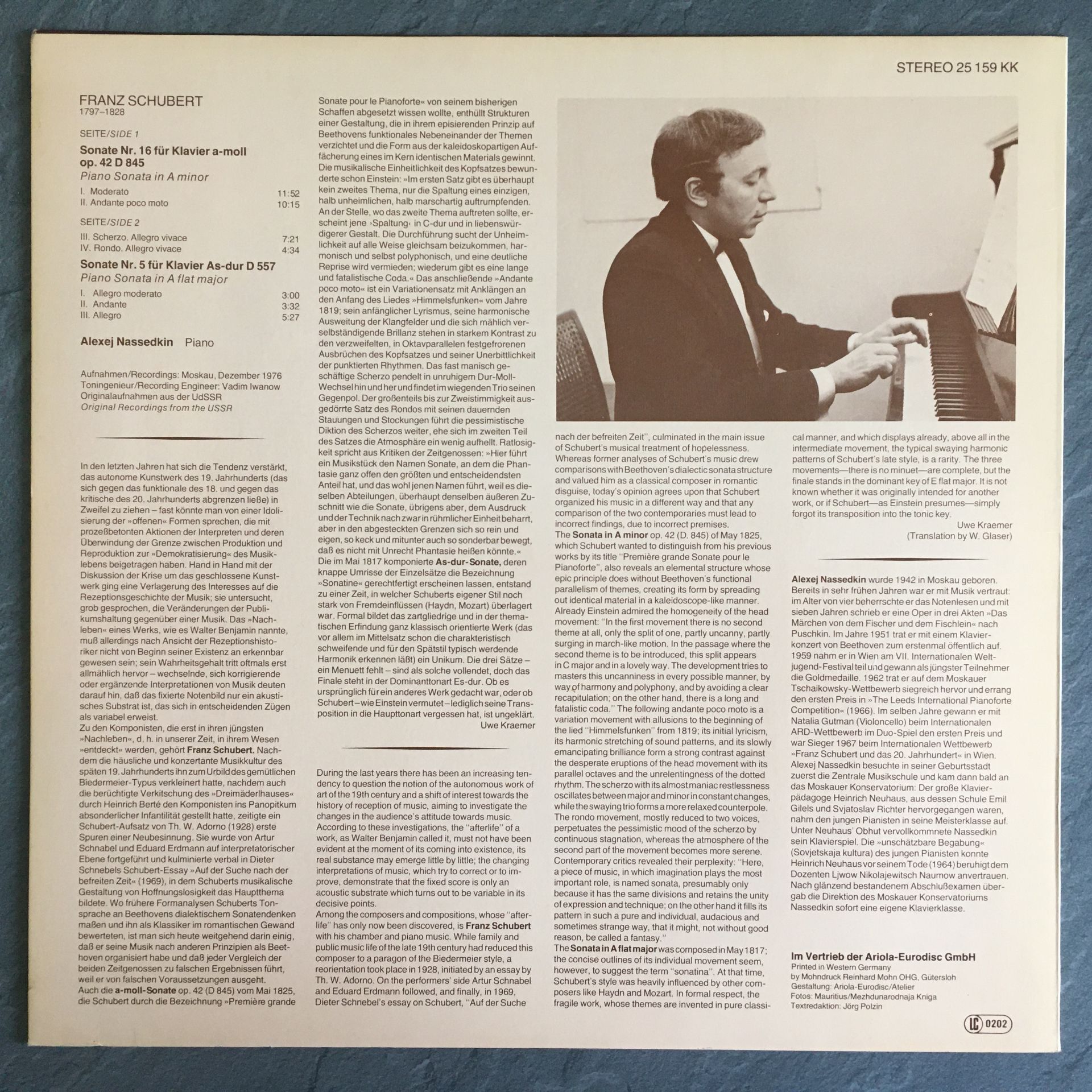 R336 Schubert Piano Sonatas No.5 & 16 Nassedkin Eurodisc 25 159 KK Stereo
