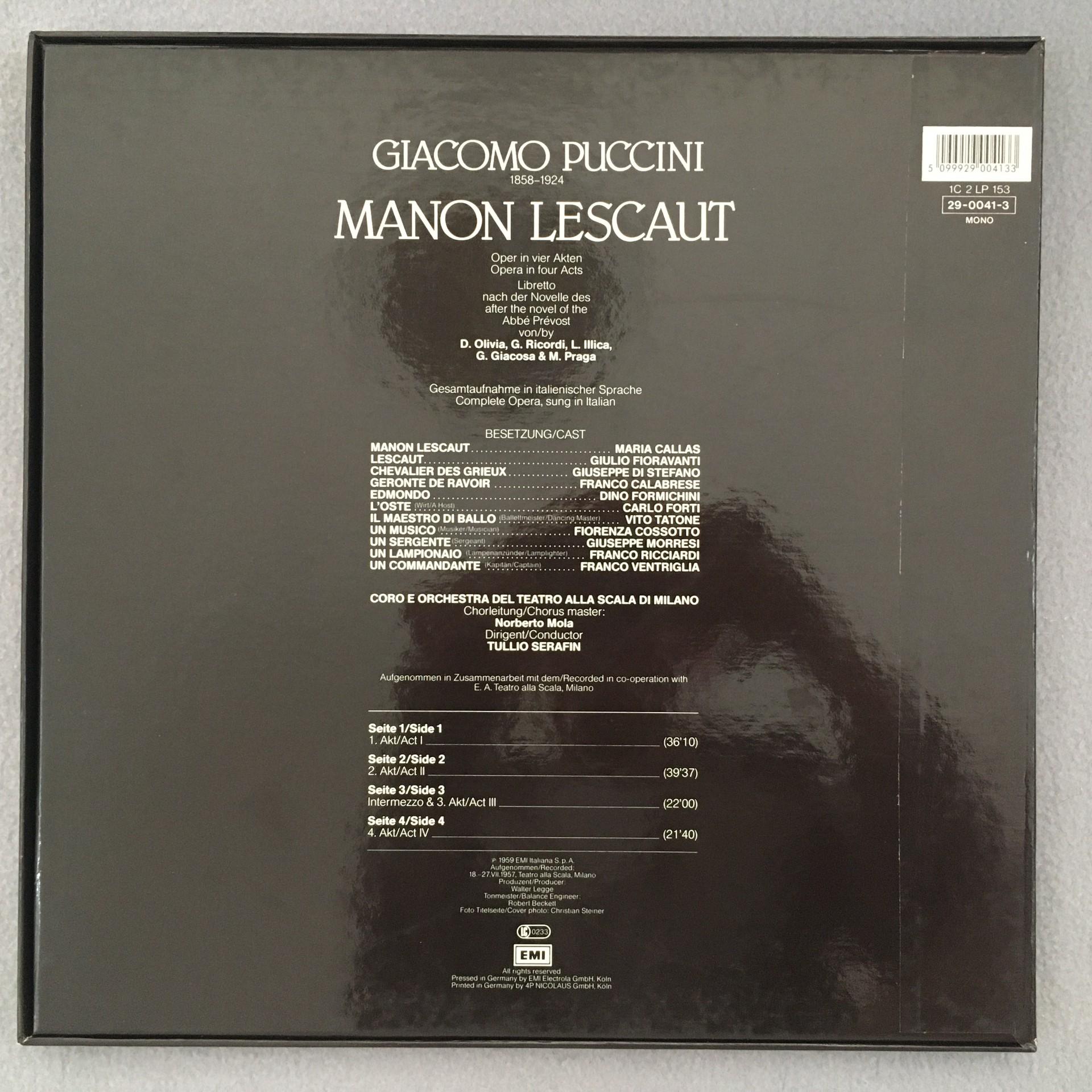 G616 Puccini Manon Lescaut Callas Serafin 2LP EMI 1C 153 29-0041-3