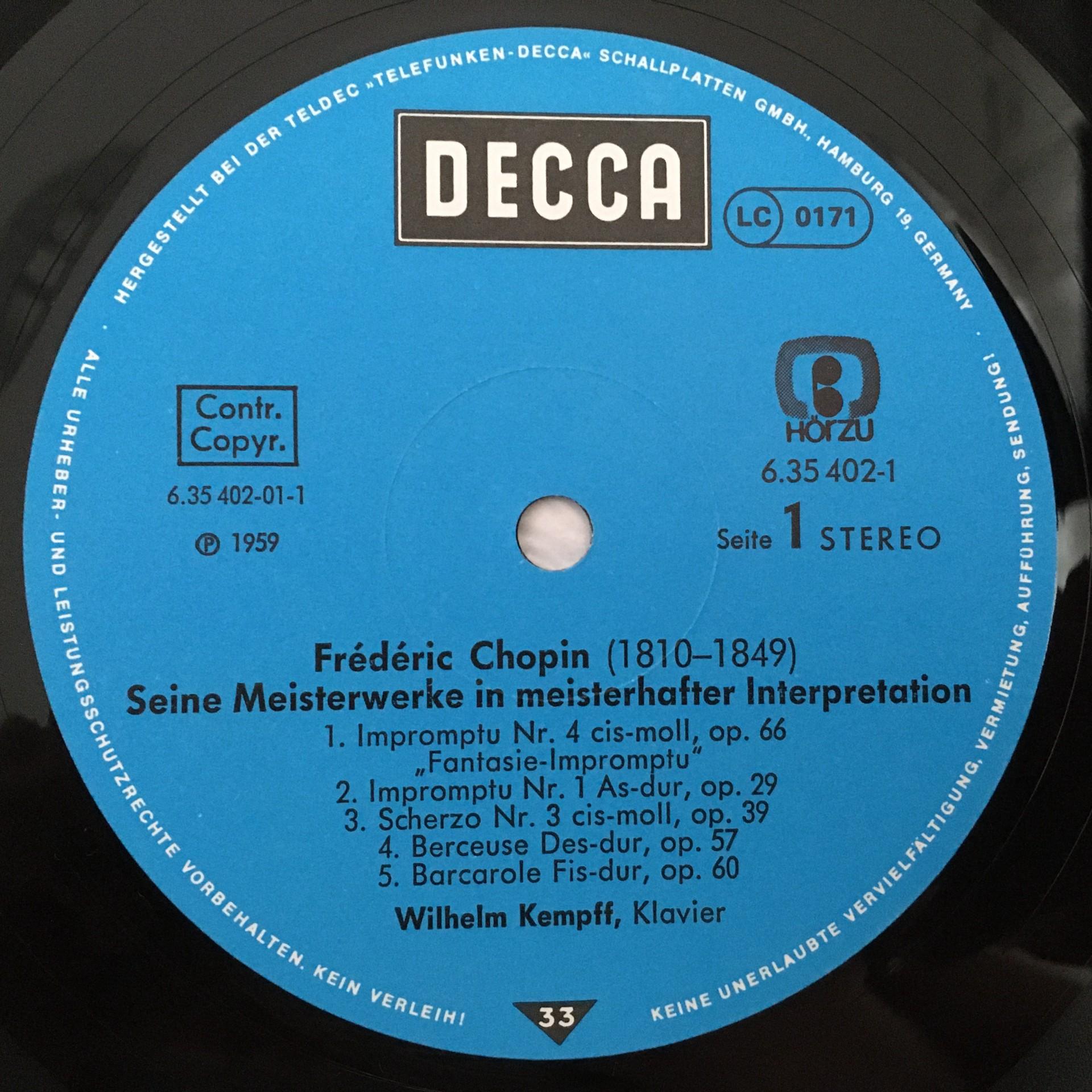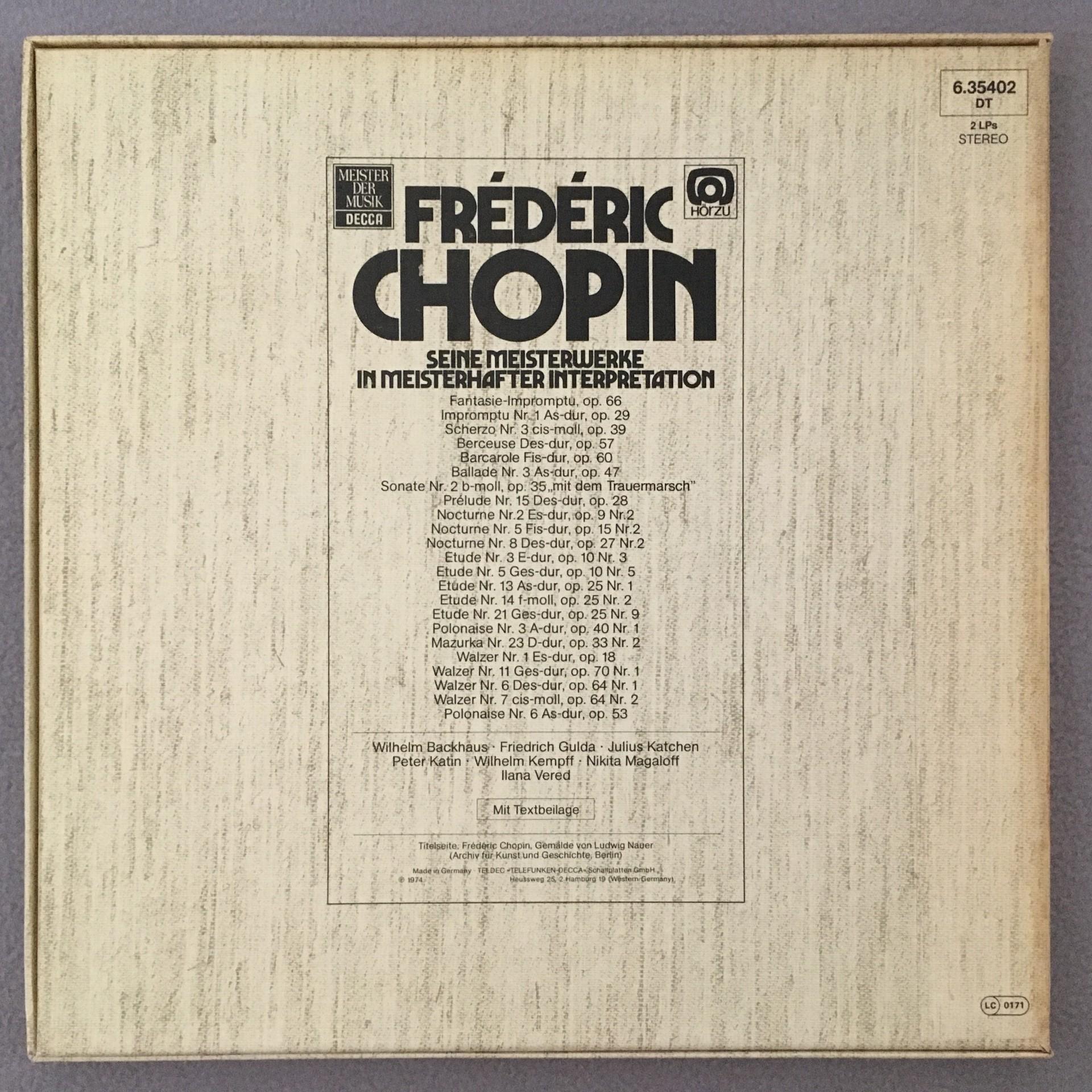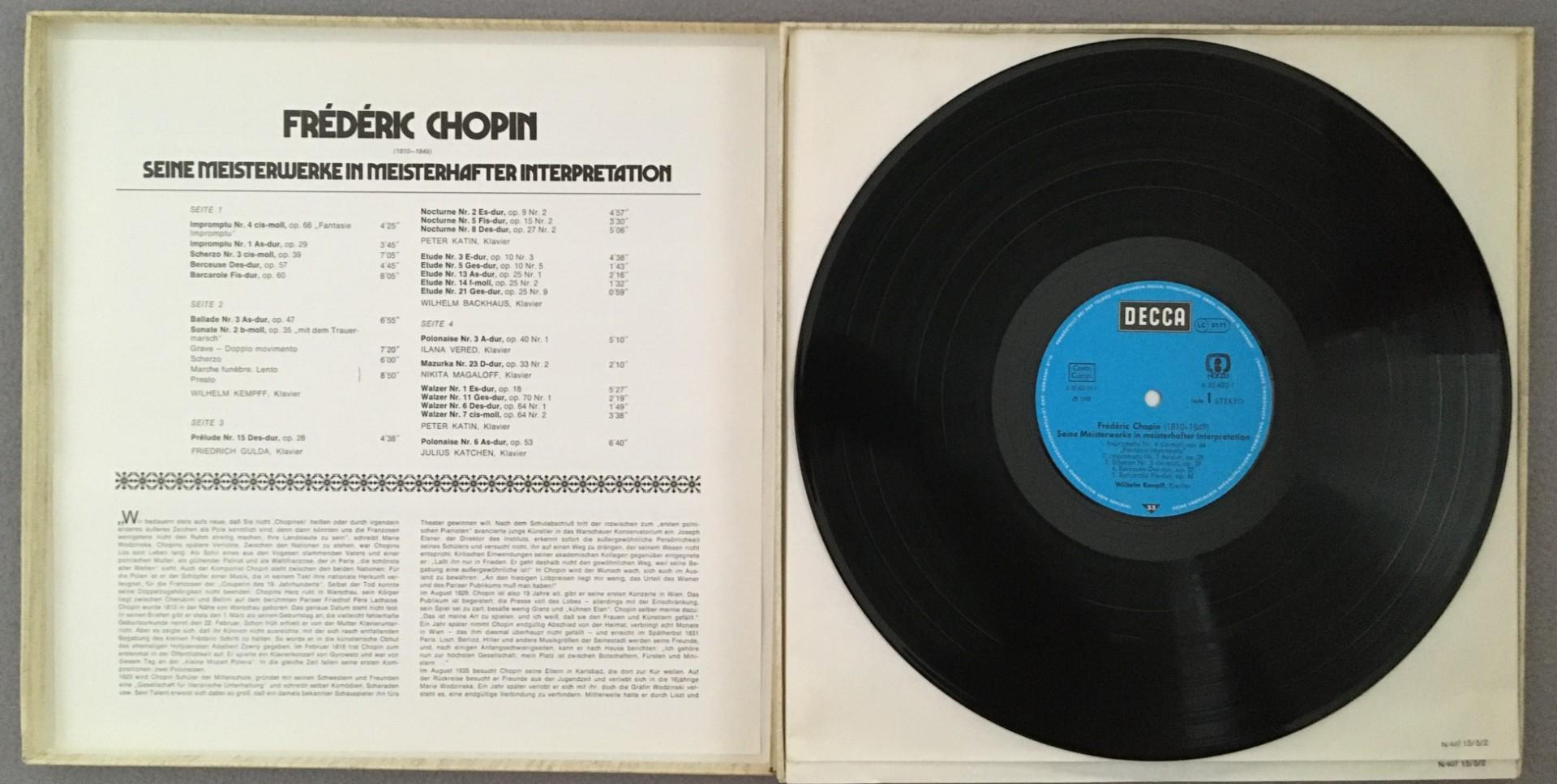 E065 Chopin Masterworks Backhaus Gulda Kempff 2LP DECCA 6.35402 DT Stereo