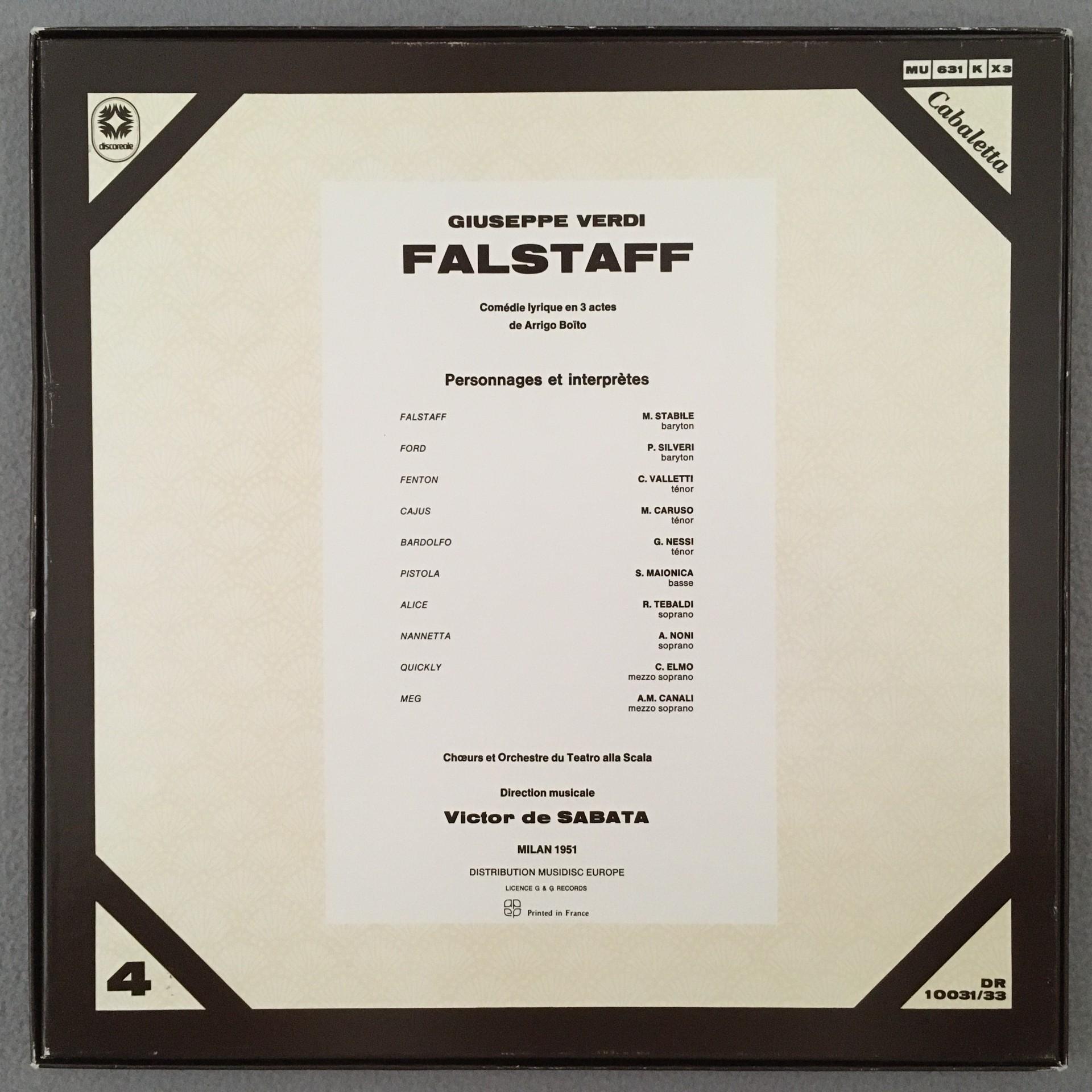 E074 Verdi Falstaff Tebaldi De Sabata 3LP Discoreale DR 10031/33