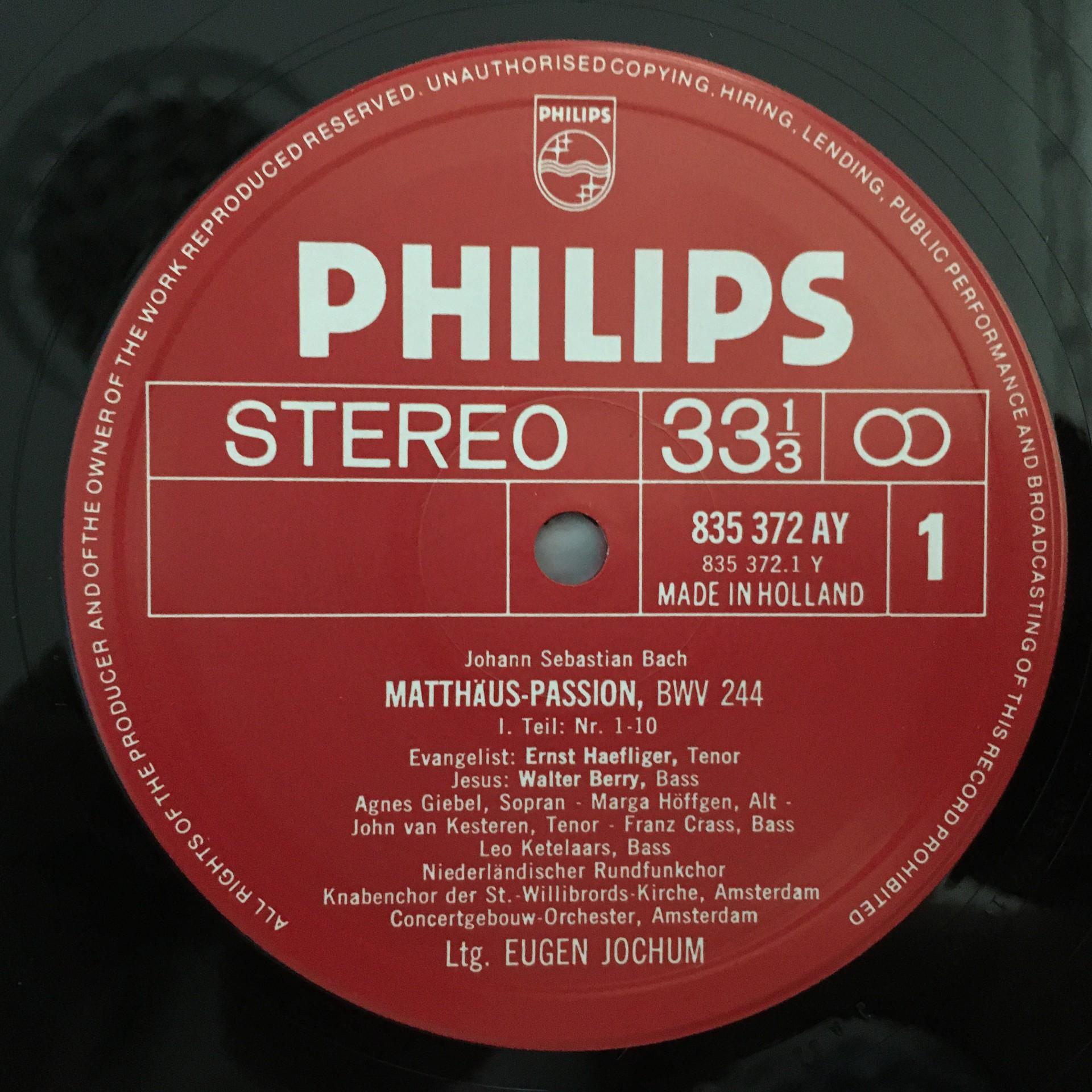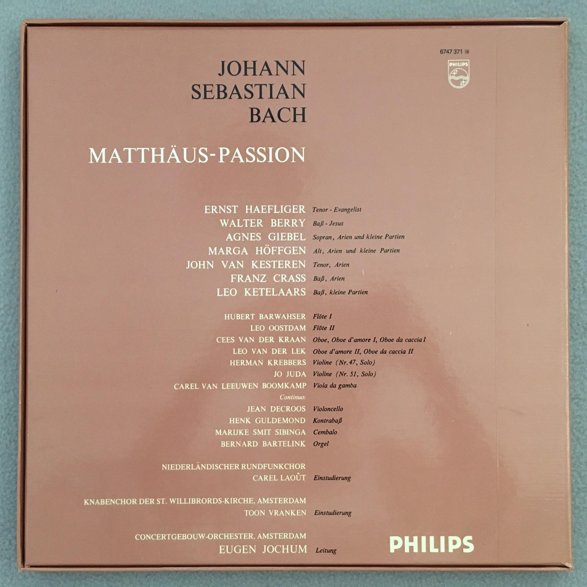 E094 Bach St. Matthew Passion Haefliger Berry Jochum 4LP Philips 6747 371 Stereo