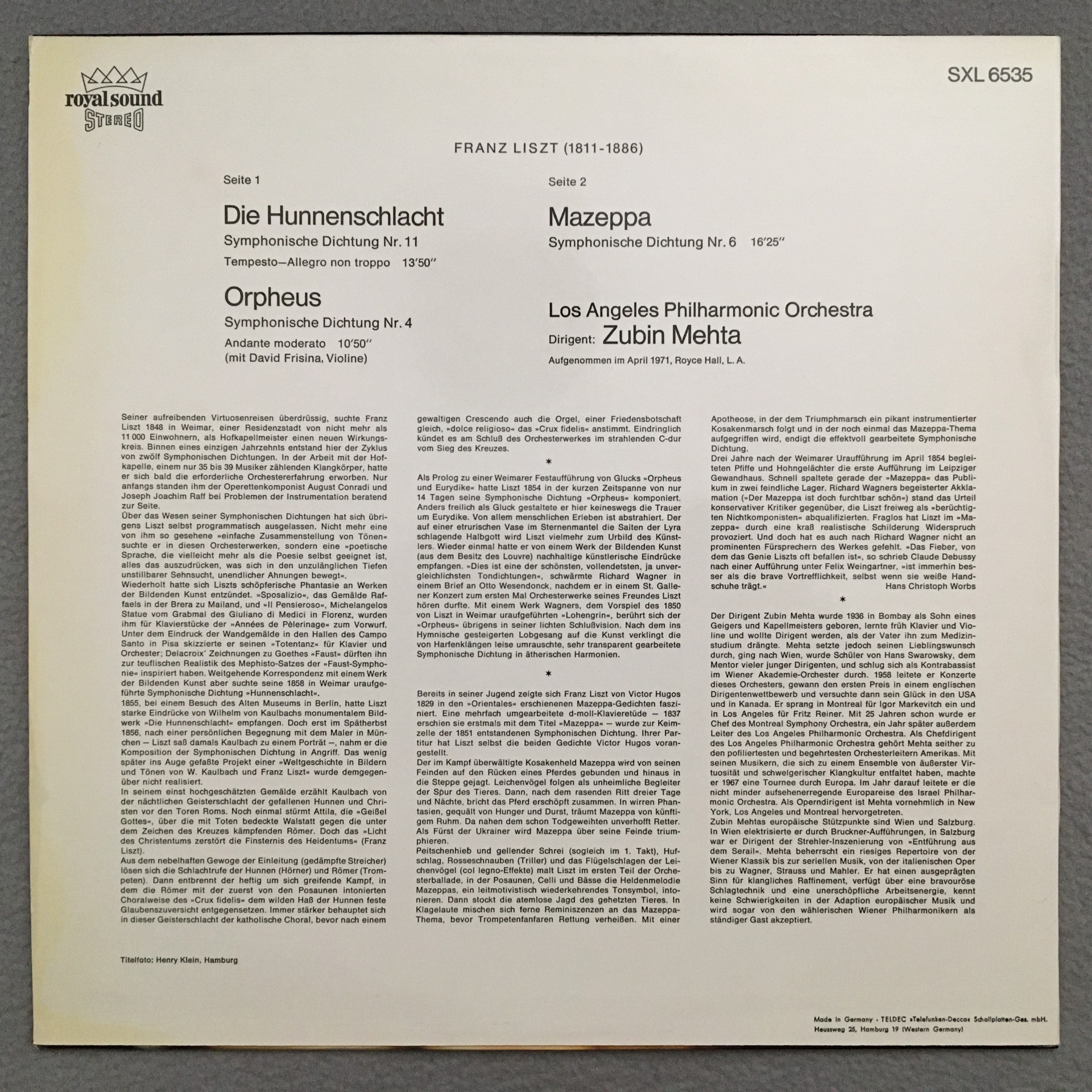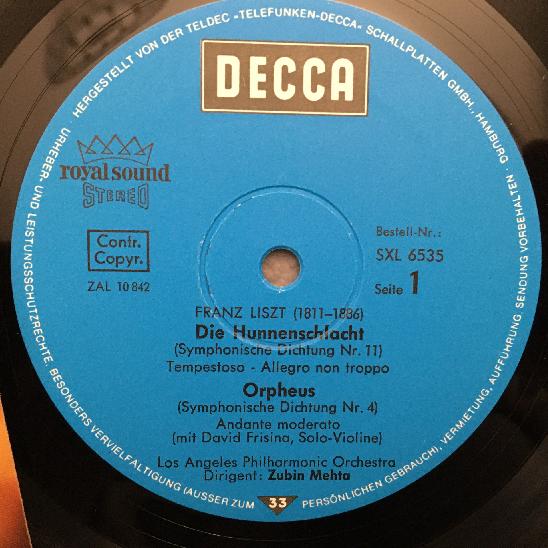 R343 Liszt Symphonic Poems Mehta DECCA SXL 6535 Stereo