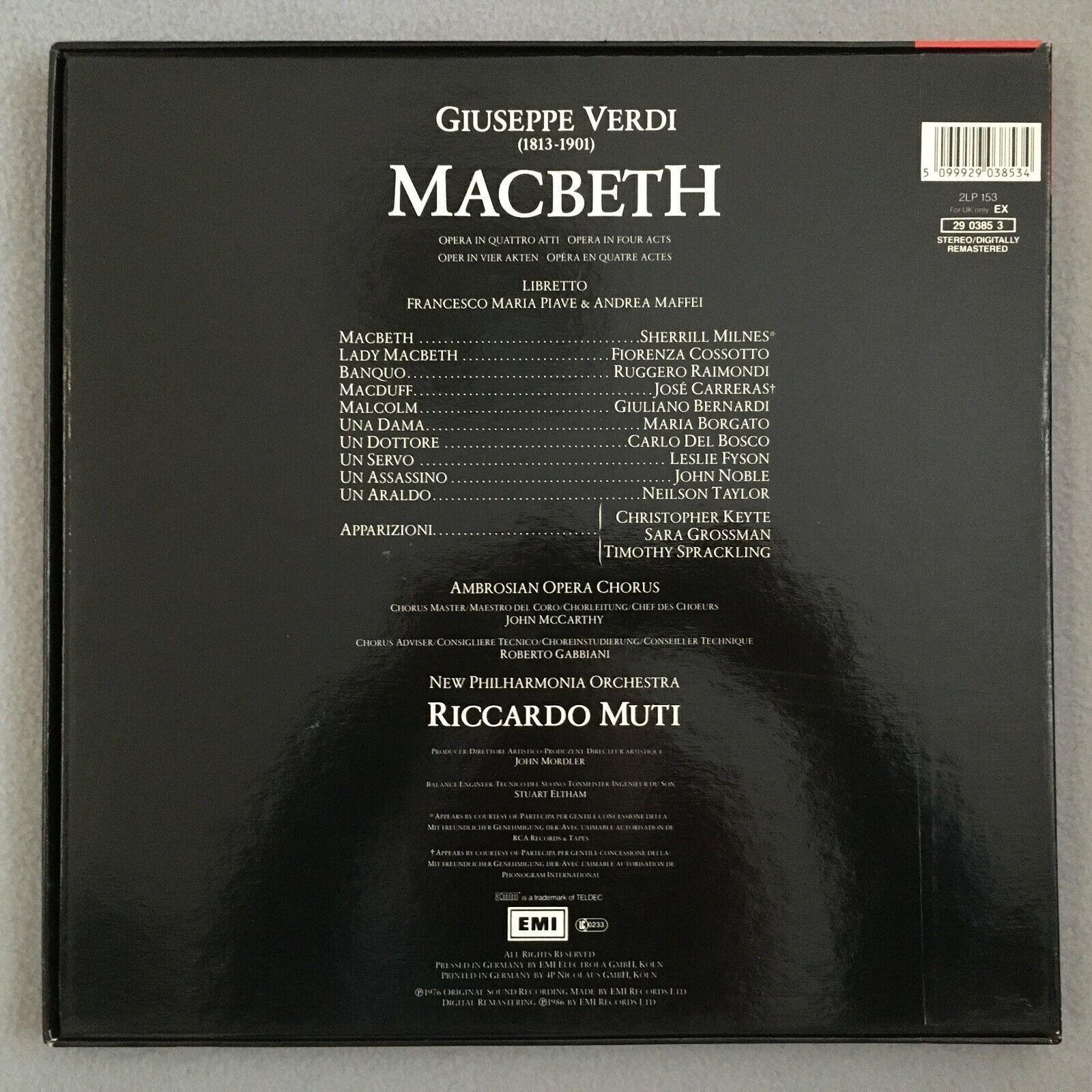 G796 Verdi Macbeth Milnes Carreras Muti 2LP EMI 153 29 0385 3 Digital Stereo