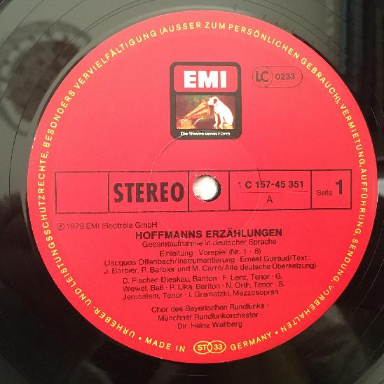 G603 Offenbach Hoffmanns Erzählungen Wallberg 3LP EMI 1C 157-45 351/53 Stereo