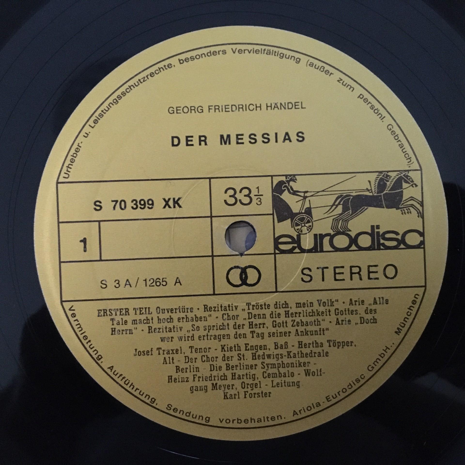 E117 Handel The Messiah Bjoner Töpper Forster BSO 3LP Eurodisc 70 405 XK Stereo
