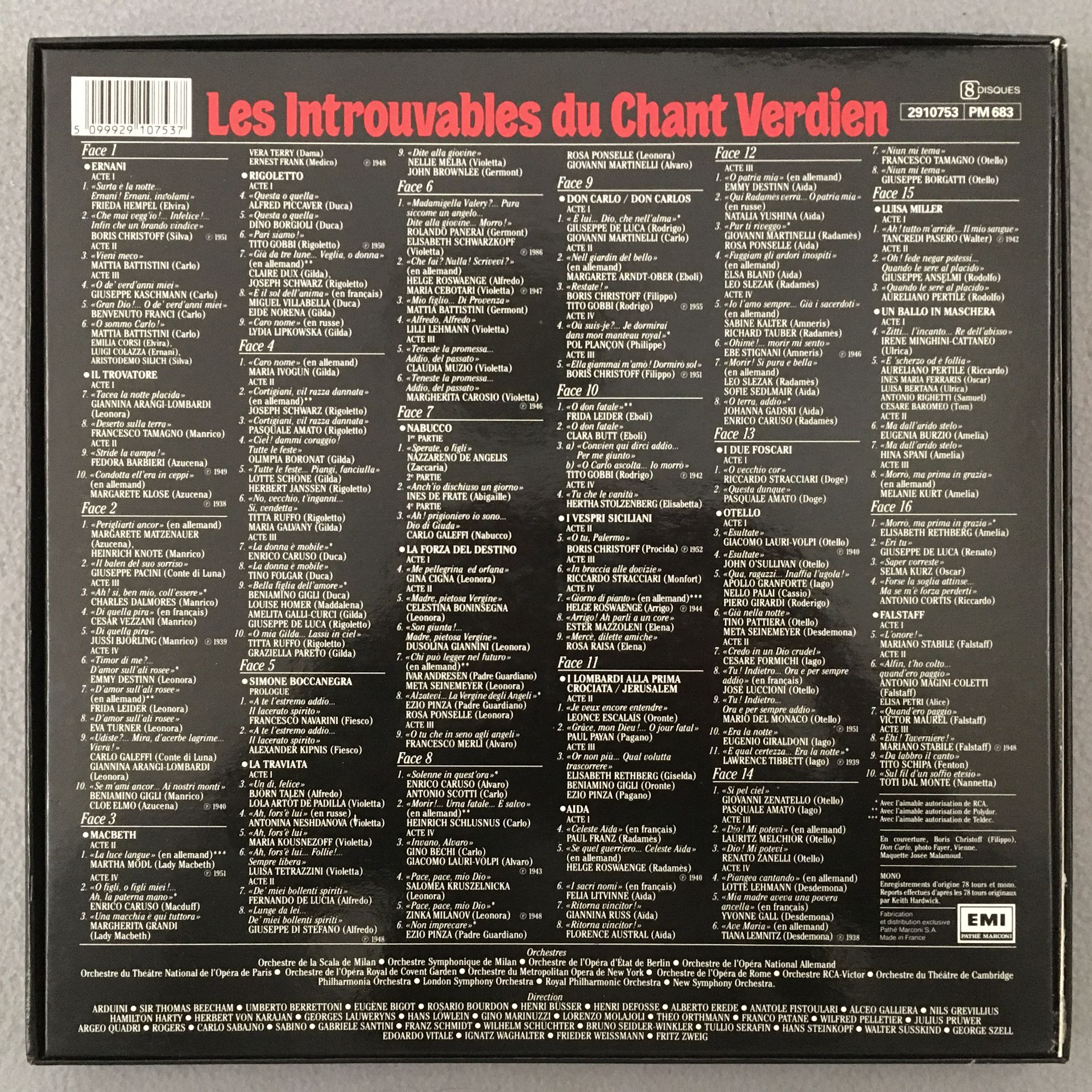 C486 Les Introuvables du Chant Verdien 8LP EMI La Voix de Son Maitre 2910753