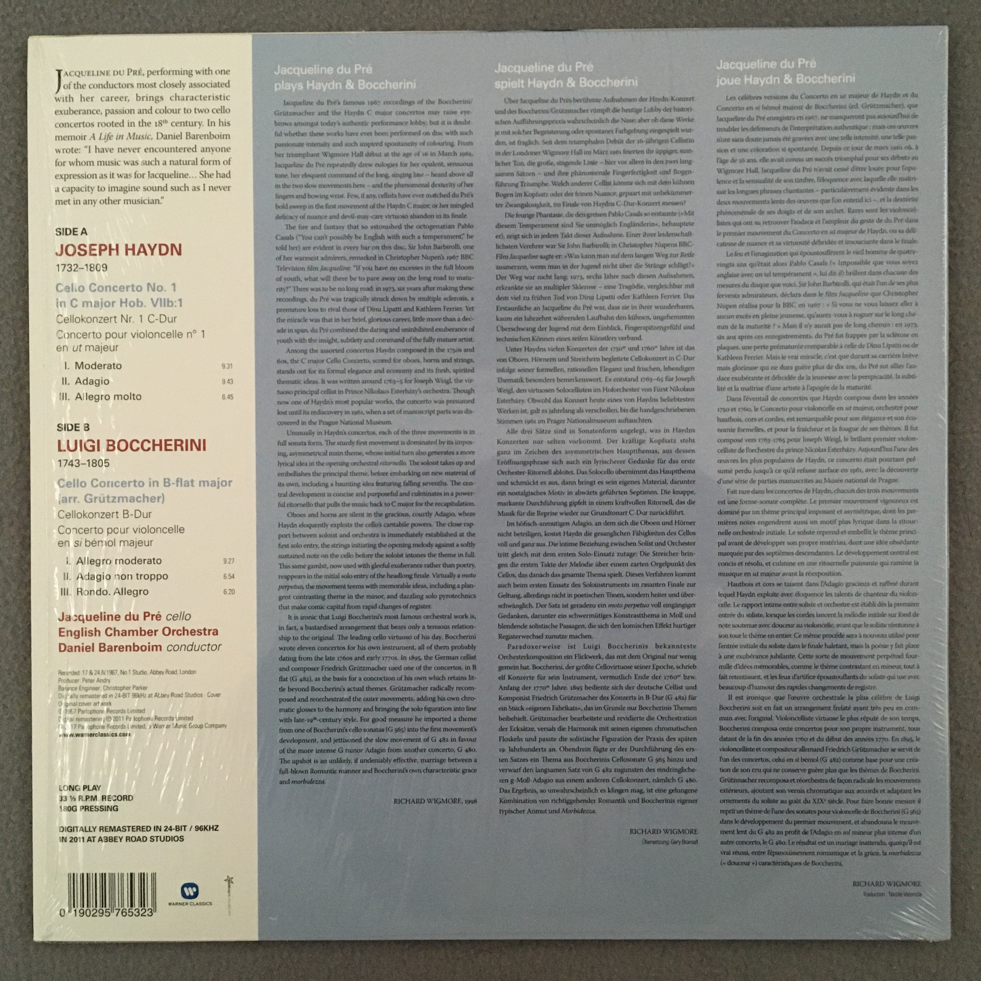 R360 Haydn Boccherini Cello Concertos Du Pre Barenboim Warner Classics in Shrink